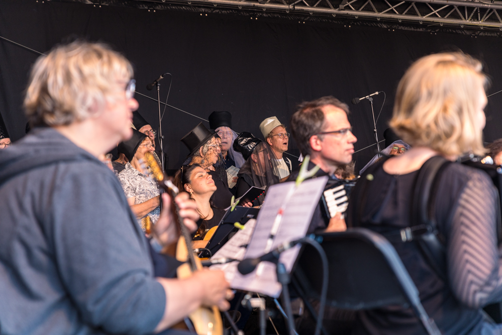 Nordstadt-Oper – das bedeutet Elektromusik und Operngesang zusammen mit ganzen Orchestern auf der Straße. Mit einer ganz besonderen Aufführung besuchte das Theater Dortmund am Samstag (5. Juni 2022) die Nordstadt. Gestartet im Blücherpark, zog die Prozession mit hunderten Menschen in Richtung Speicherstraße. Zusammen mit einer Diversität des Publikums, die das Theater wohl selten erlebt.