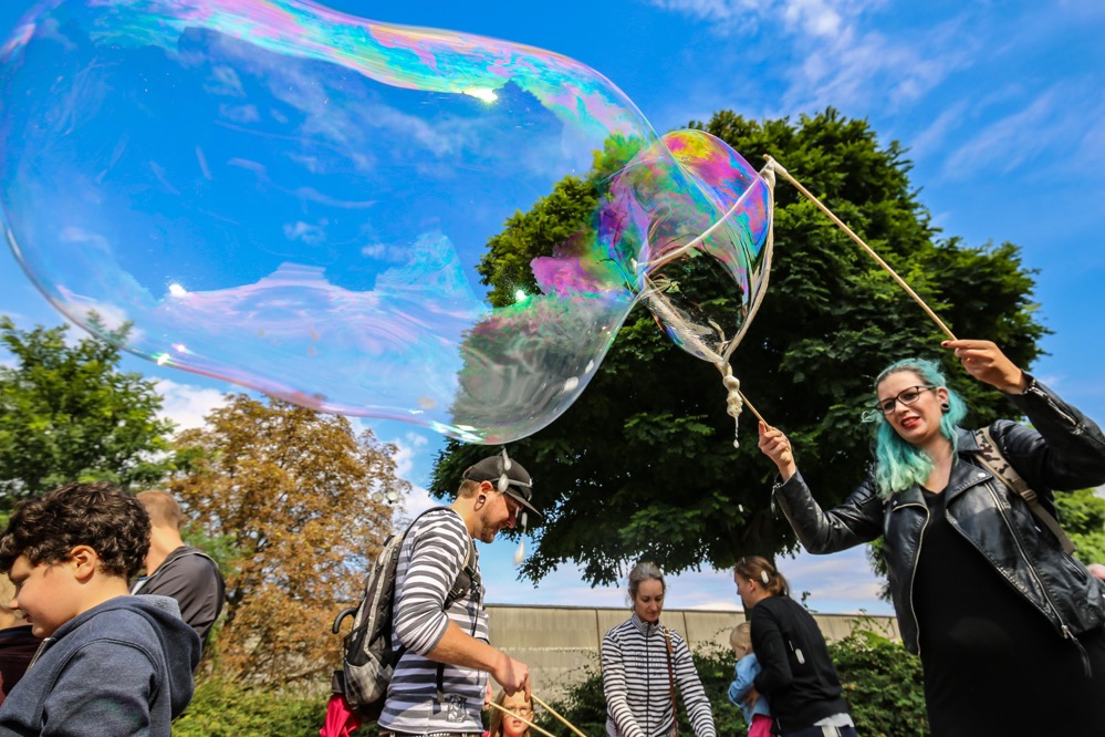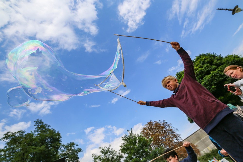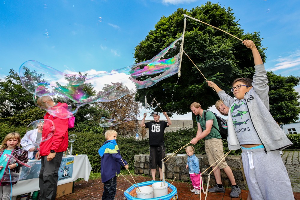 Während die BesucherInnen hier schlemmten, versank das alte Hafenamt in Seifenblasen. Diese konnten Kinder in einem Workshop selbst herstellen. Die Locations waren allesamt fußläufig zu erreichen. Zusätzlich gab es einen Shuttle-Bus, der alle 20 Minuten zwischen neun Locations hin- und herpendelte.