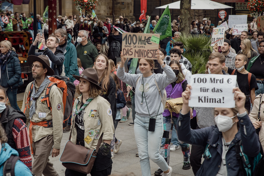 Von Bürgerlichen bis Radikalen und von Kindern bis Senioren waren die Teilnehmer:innen sehr gemischt vertreten. Viele Demonstrierende trieb die Angst um, der Klimaschutz könnte durch die ganzen anderen Krisen vernachlässigt werden. Das brachten sie auch auf Schildern zum Ausdruck.
