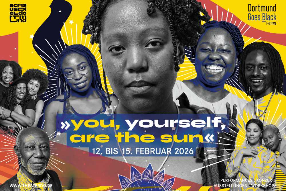 Zum 5-jährigen Jubiläum lädt „Dortmund Goes Black“ vom 13. bis 15. Februar 2026 im Schauspiel Dortmund ein. Das Festival vereint Schwarze Kunst, Performances sowie politische und persönliche Geschichten. Der Leitgedanke „You, yourself, are the sun“, inspiriert vom senegalesischen Filmemacher Ousmane Sembène, rückt Selbstermächtigung, Sichtbarkeit und das Erzählen eigener Perspektiven in den Fokus.