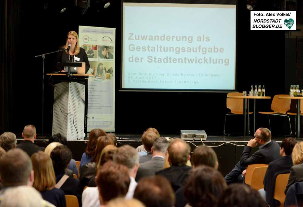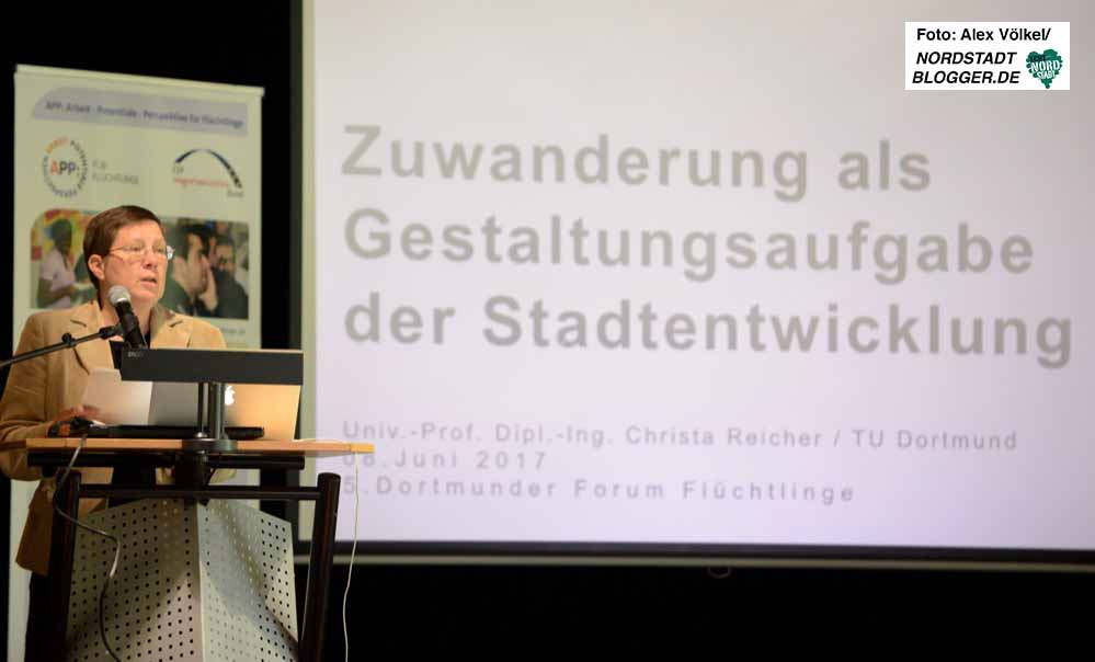 Dass die Integration von Flüchtlingen mehr als eine kurzfristige Herausforderung  ist, hat auch die Wissenschaft erkannt: Prof. Christa Reicher von der TU Dortmund sieht die Flüchtlingswanderung daher u.a. auch als Gestaltungsaufgabe für die Stadtentwicklung und stellte ihre Überlegungen dazu vor.
