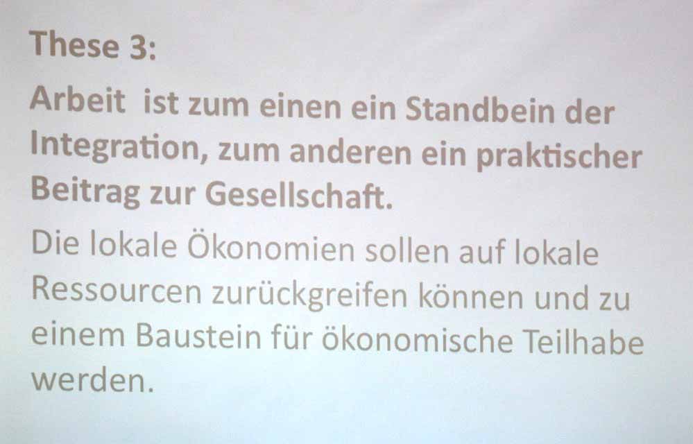 • These 3: Arbeit ist zum einen ein Standbein der Integration, zum anderen ein praktiscer Beitrag zur Gesellschaft.
