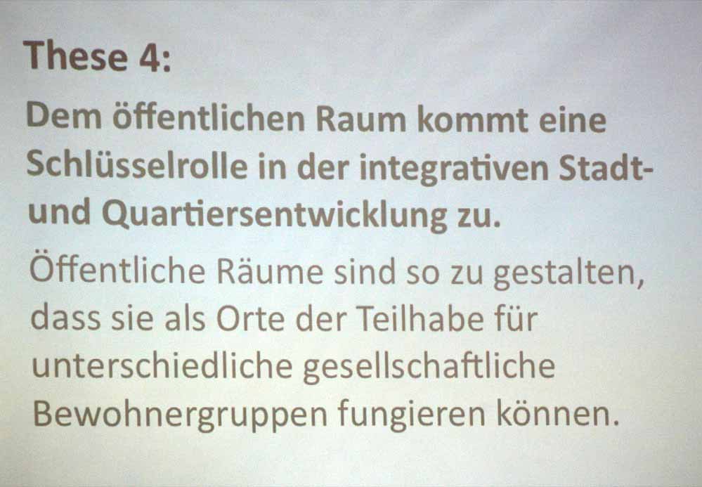 • These 4: Dem öffentlichen Raum kommt eine Schlüsselrolle in der integrativen Stadt- und Quartiersentwicklung zu.