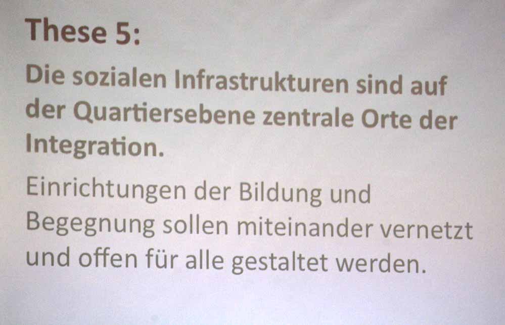 • These 5: Die sozialen Infrastrukturen sind auf Quartierebene zentrale Orte der Integration.