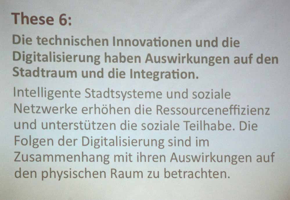 • These 6: Die technischen Innovationen und die Digitalisierung haben Auswirkungen auf den Stadtraum und die Integration.