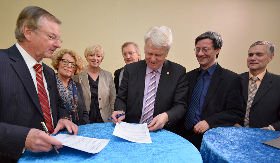 Staatssekretär Ludwig Hecke, OB Ullrich Sierau und Prof. Dr. Gunter Thielen ( Walter Blüchert Stiftung) haben den Kooperationsvertrag  unterzeichnet.
