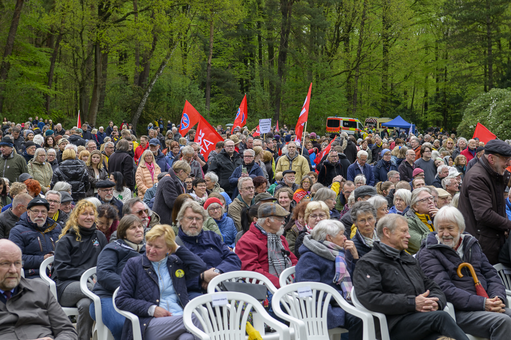 Zwar gebe es Stimmen, die forderten, mit den Schuldeingeständnissen und Gedenkfeiern aufzuhören, doch dies dürfe nicht geschehen. Die Verantwortung für das Erinnern werde weiterhin wahrgenommen, heute und in der Zukunft, ehe Bürgermeister Norbert Schilff das Wort auf der Bühne ergriff.
