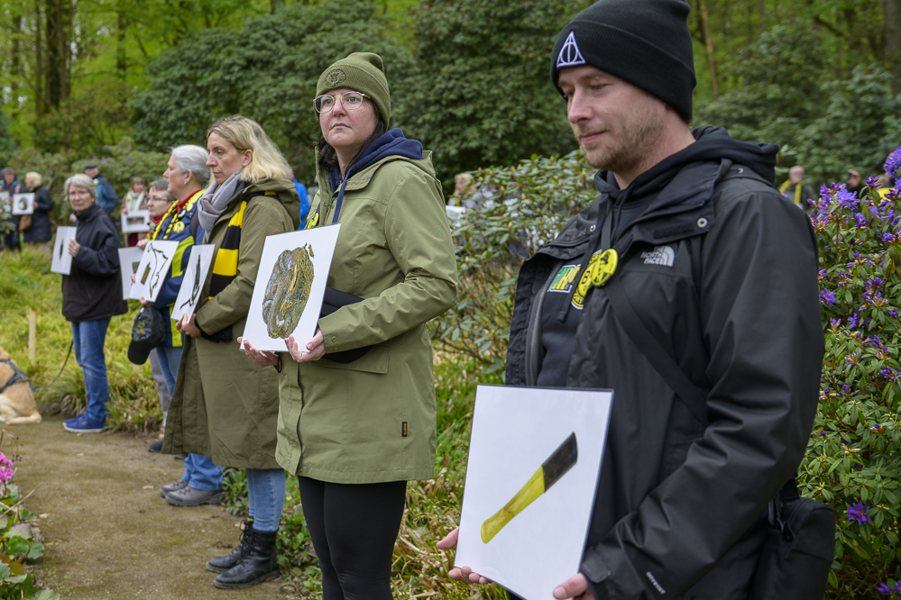 Sie wanderten, joggten und radelten den sieben Kilometer langen Weg vom Stadion Rote Erde durch den Rombergpark zum Mahnmal in der Bittermark – den Orten, an denen die Gestapo ihre Morde verübte. Drei dieser Mordaktionen fanden in der Bittermark statt, sechs im Rombergpark und eine am Bahndamm zwischen Hörde und Berghofen.