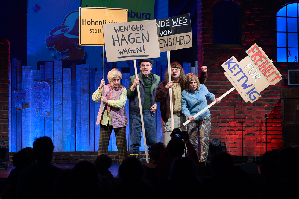 „Trumps Irrungen, die Neuwahlen, der BVB und der Stress bei ThyssenKrupp, alles findet auf Zollern statt“, freut sich Sandra Schmitz. Sie sorgt mit ihrer Freiheitsstatue auf der Flucht für viele für den Programmhöhepunkt.