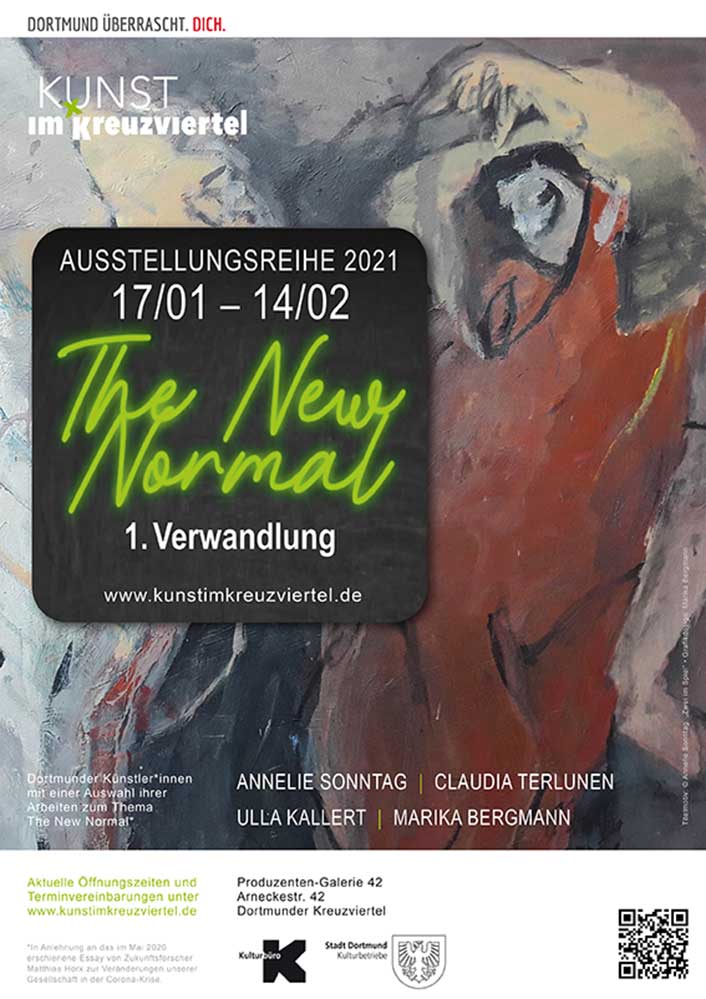 2021 werden siebzehn Dortmunder Künstlerinnen und Künstler, die sich unter dem Label »Produzentengalerie 42 Kunst im Kreuzviertel« zusammengeschlossen haben, mit sieben Ausstellungen und Aktionen unter dem Thema „The New Normal“an die Öffentlichkeit treten.