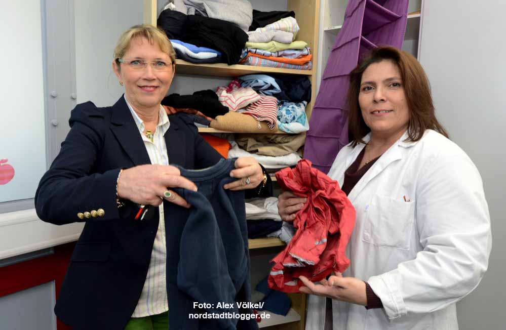 Renate Breidenbach und Sevic Mir Jahan präsentieren die kleine Kleiderkammer.