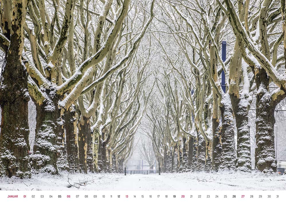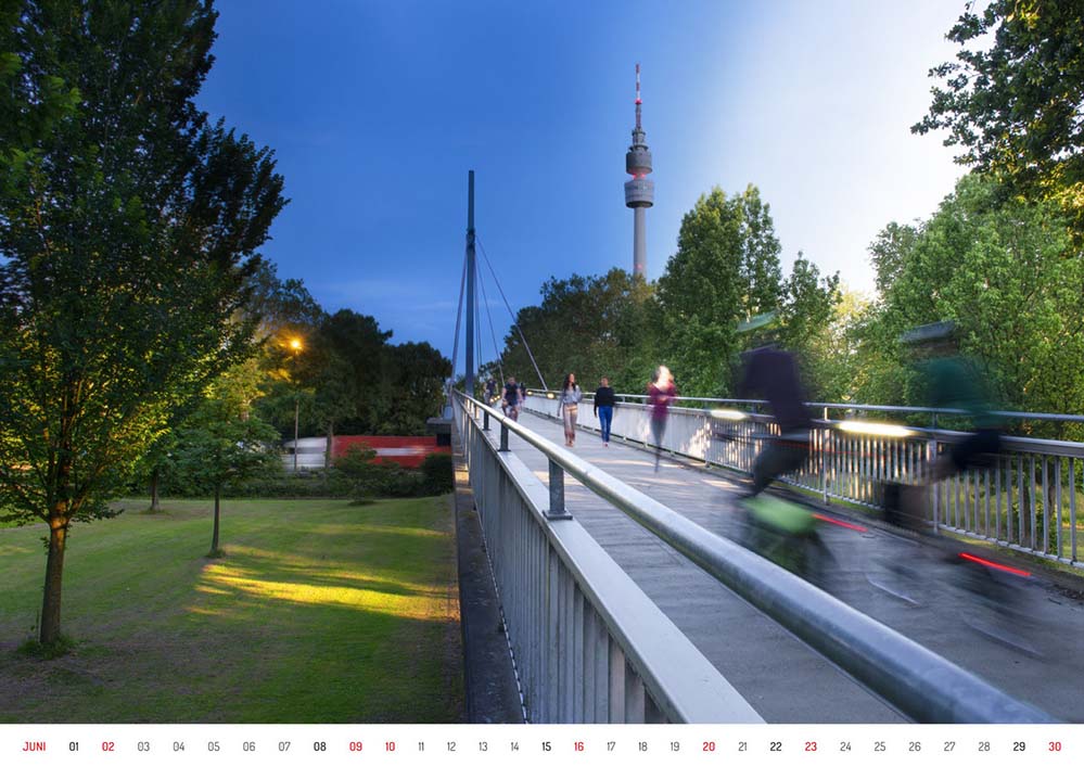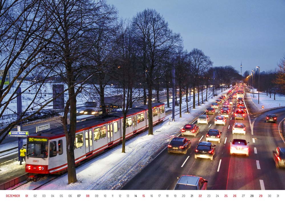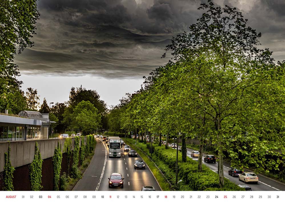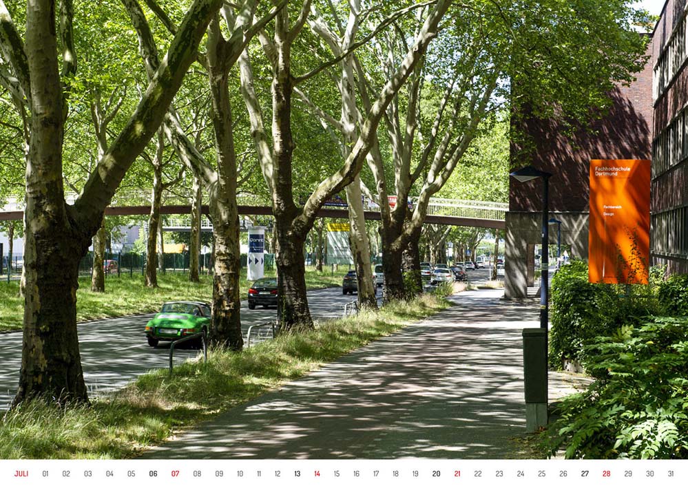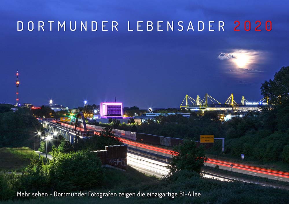 Von der Schönheit der B1-Allee erzählt ein großformatiger Kalender, für den 13 Dortmunder Fotografinnen und Fotografen den berühmten Stadtraum für jeden Monat individuell portraitiert haben – nach einem reinigendem Gewitter, als quirlige Nachtaufnahme, als riesiger Naturraum, als Panorama oder schlicht-schönes Stillleben.