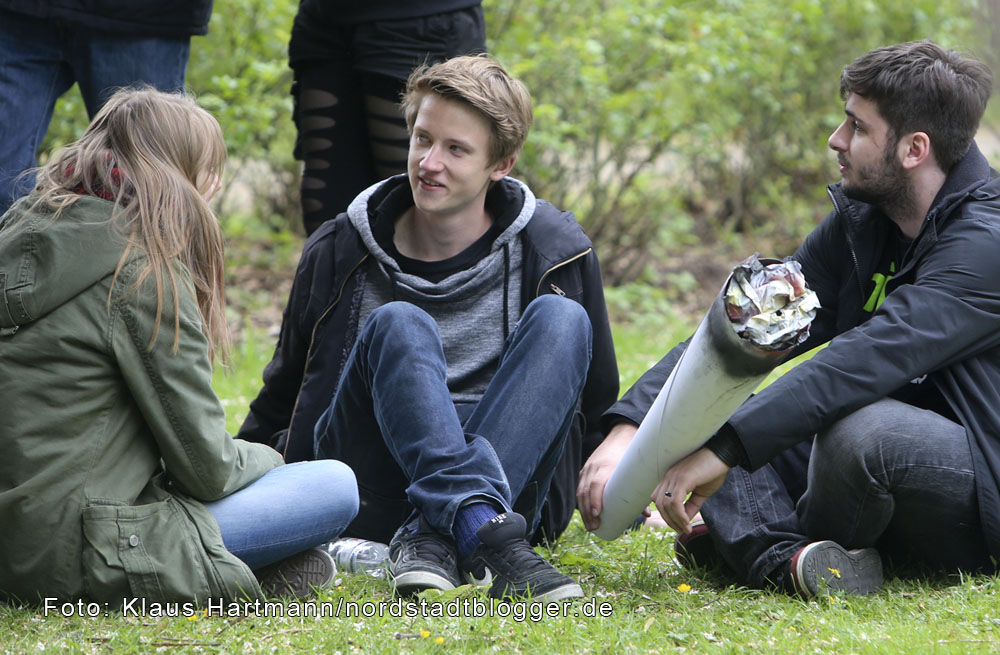 Zum Abschluss gibt es dann noch einen Ballonwettbewerb der anderen Art: Die Ratsfrau läßt an die Teilnehmer im Westpark Luftballone mit Karten daran verteilen. Auf der Vorderseite steht „Flying High“, auf der Rückseite kann jeder einen Grund nennen, warum er für die Legalisierung von Cannabis ist.