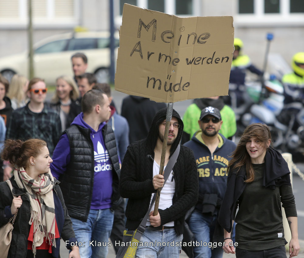 Mit vielen amüsanten Sprüchen auf Transparenten und Plakaten machten 700 bis 800 Teilnehmer auf ihr Anliegen aufmerksam.