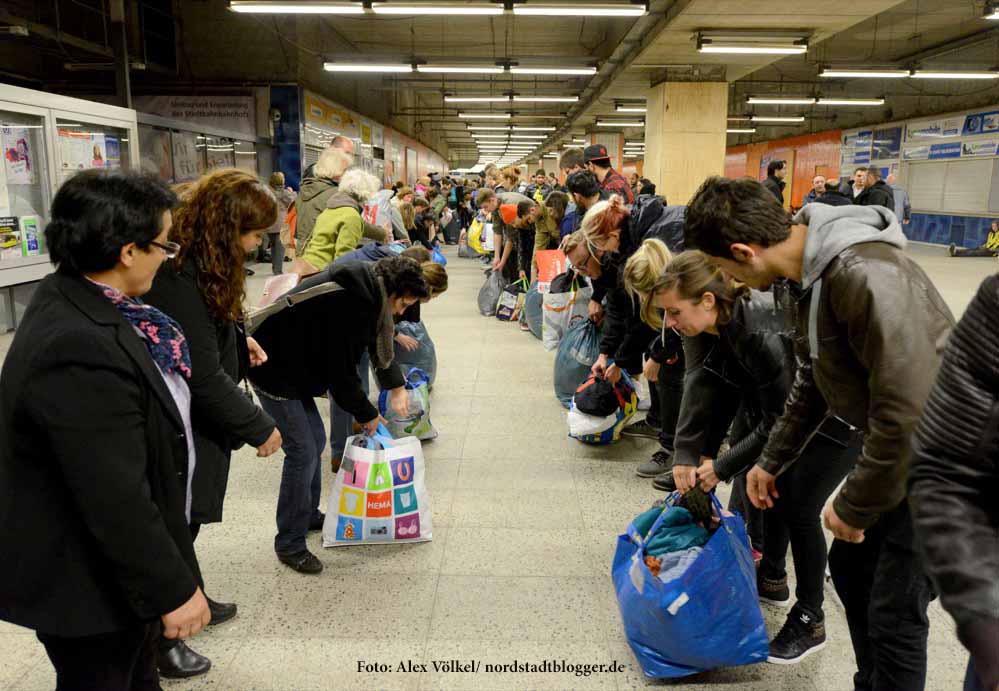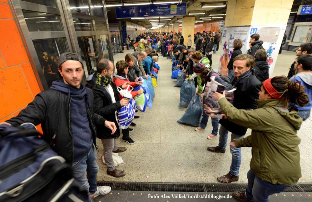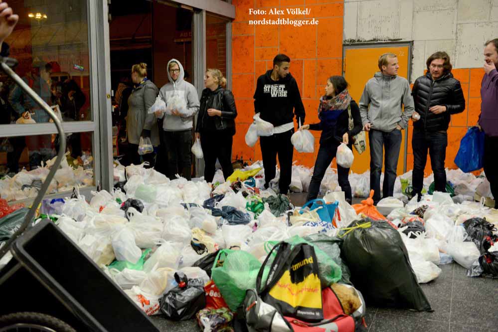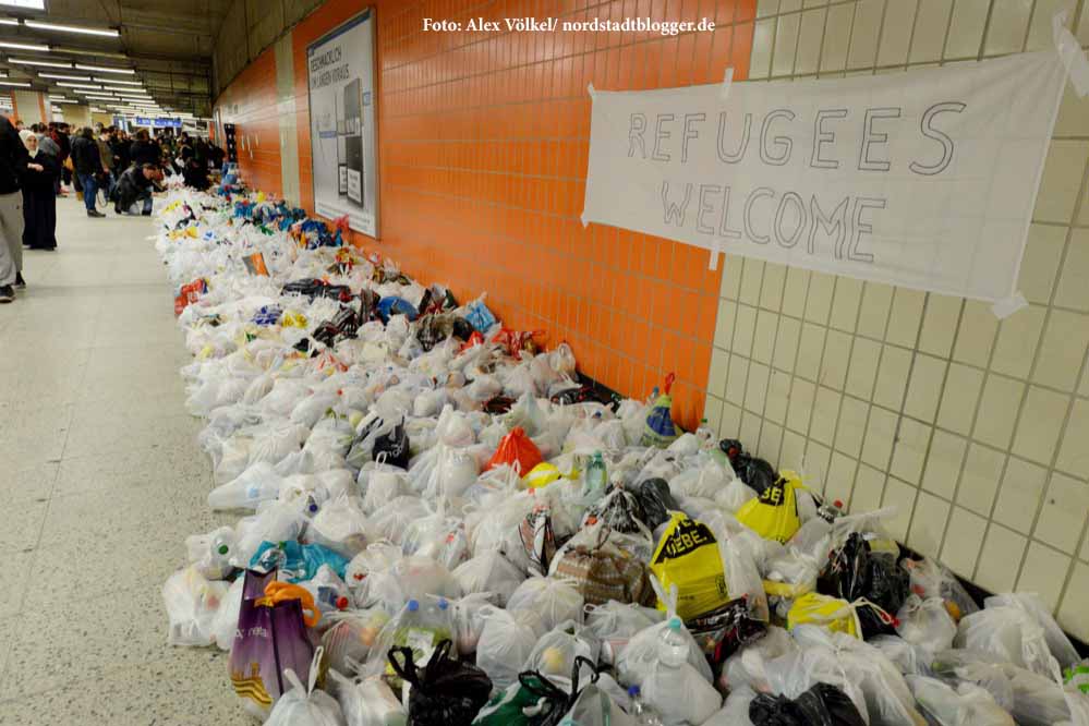 Als die Menschen hörten, dass ein „Zug der Hoffnung“ mit Flüchtlingen aus Ungarn nach Dortmund kommen würde, brachten sie spontan kubikmeterweise Sachspenden und Lebensmittel zum Hauptbahnhof. Sie wollen helfen, die Flüchtlinge willkommen heißen, die Nazis in ihre Grenzen weisen und zeigen, dass Mitmenschlichkeit und Menschenwürde in Dortmund eine große Rolle spielt.