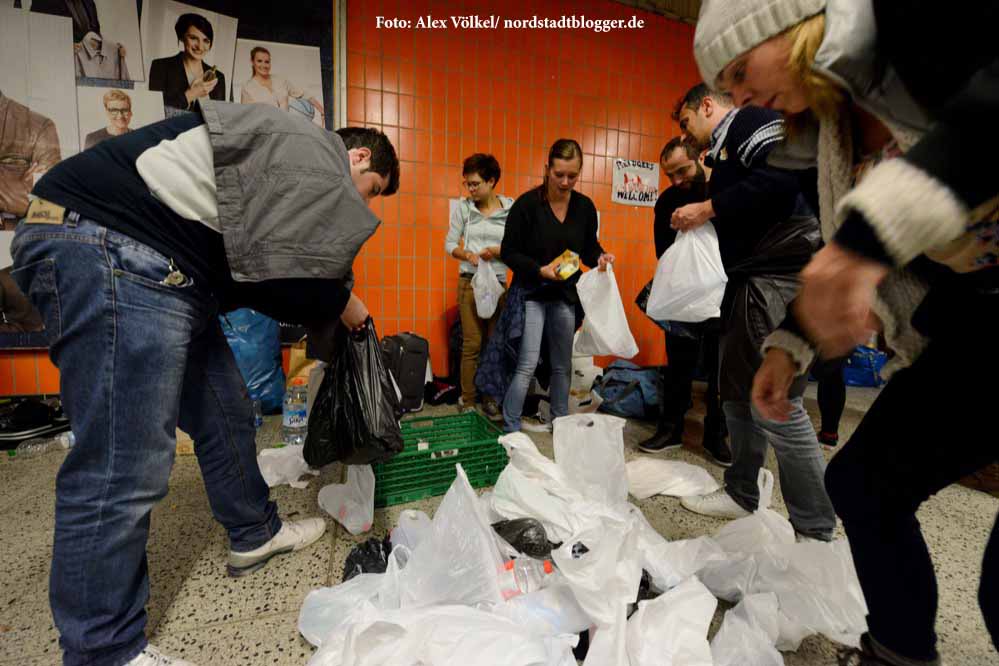 „Refugees Welcome“, „Welcome to Germany“ und „Welcome in Dortmund“ war auf Schildern und Transparenten zu lesen. Die Unterstützer hatten tonnenweise Hilfsgüter herangeschafft und unzählige Versorgungstüten für die Menschen gepackt.