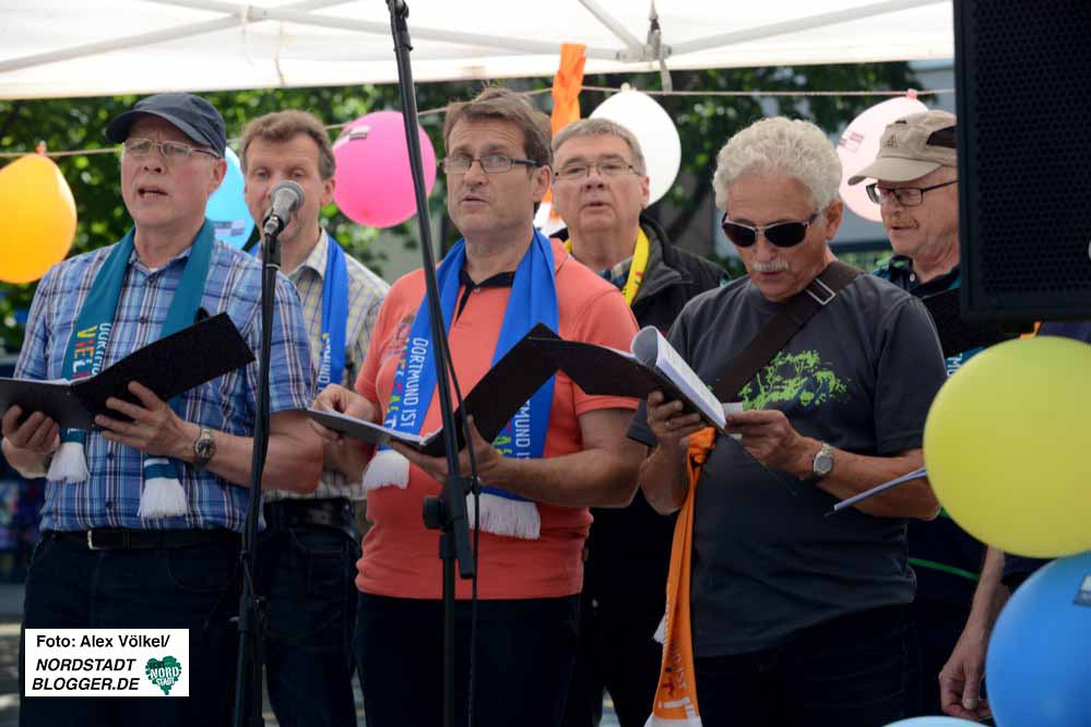 Dort hatte der Runde Tisch Dorstfeld – unterstützt von Ortsvereinen und Kirchengemeinden – ein buntes Kultur- und Unterhaltungsprogramm organisiert, zu dem später auch einige TeilnehmerInnen der Arbeitskreis-Demo hinzustießen.