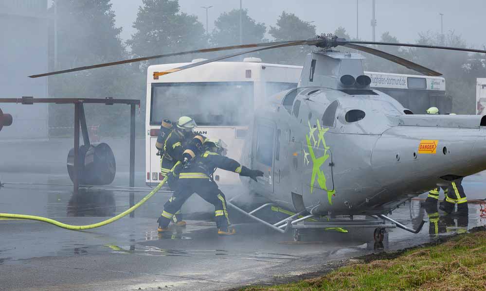 Im Sicherheitsbereich des Dortmunder Flughafens fand am Samstag (21. August 2021) eine turnusmäßige Flugunfallübung statt. Flughafenfeuerwehr, Feuerwehr und Rettungsdienst der Stadt Dortmund sowie der Flughafenbetreiber übten gemeinsam, um für den Ernstfall gerüstet zu sein. Hauptziele derartiger Übungen sind die Flugzeugbrandbekämpfung und Menschenrettung.