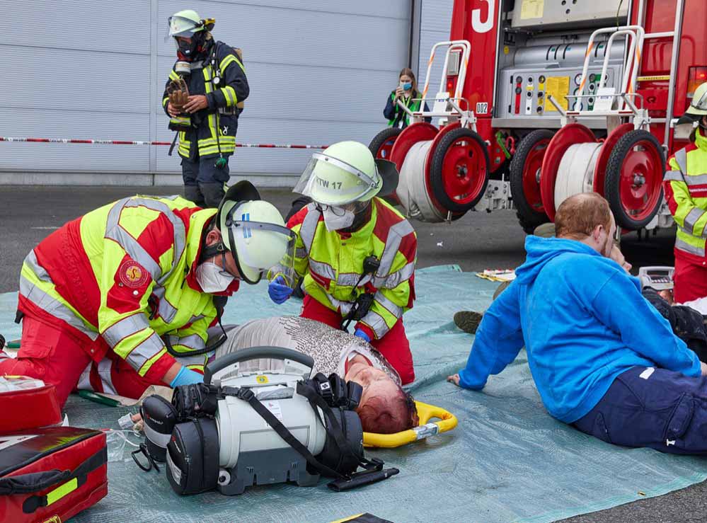 „Alle Beteiligten haben professionell, richtig und zügig reagiert. Der Rettungsdienst hat sich vorbildlich um die Crews der Flieger gekümmert“, lobt er die Einsatzkräfte. Sechs Unfalldarsteller spielten verletzte Personen, die aus den Luftfahrzeugen geborgen werden mussten.