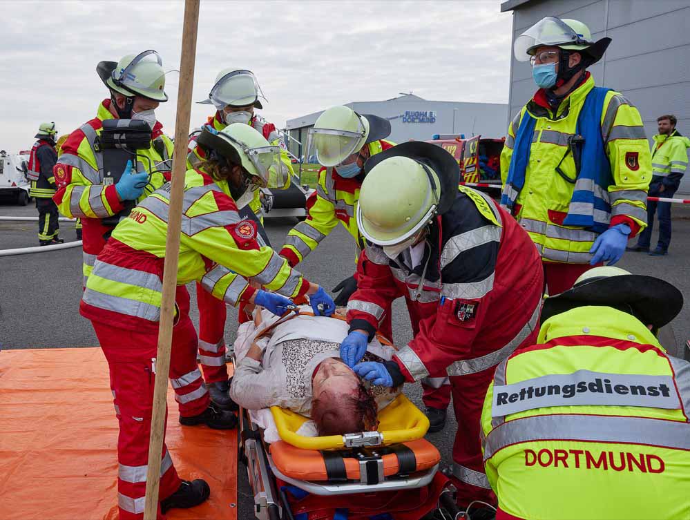 Am kommenden Samstag, dem 3. Juni, ist es wieder so weit. Dutzende Einsatzkräfte der Flughafenfeuerwehr, der Feuerwehr und des Rettungsdienstes der Stadt Dortmund sowie Spezialeinheiten der Bundespolizei proben von ca. 8.00 bis 11.00 Uhr am Dortmund Airport den Ernstfall. Ergänzt werden die städtischen Einheiten zusätzlich durch ein Team für Psychosoziale Notfallversorgung (PSNV).