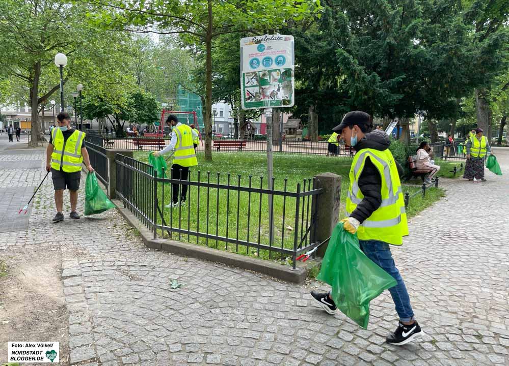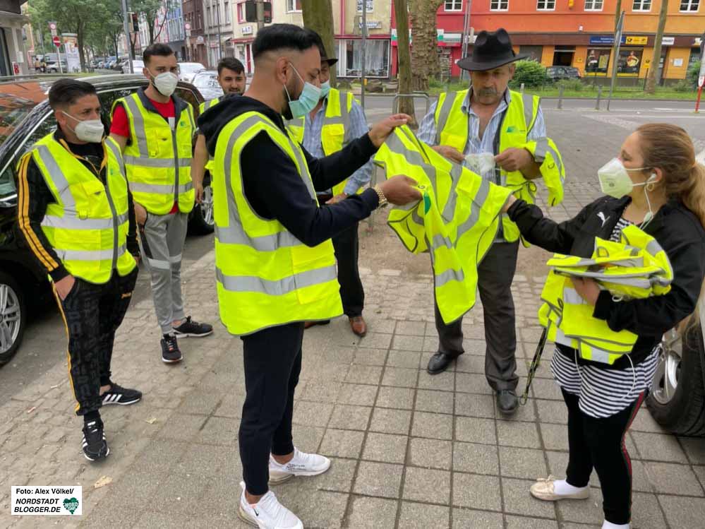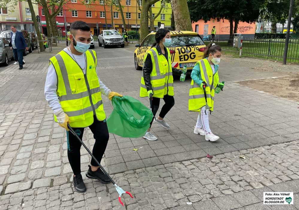 Zum Auftakt der Sammelaktion kamen auch Nordstadt-Bezirksbürgermeisterin Hannah Rosenbaum und und EDG-Geschäftsführer Frank Hengstenberg, die sich über das Engagement des Vereins sehr freuten und – zumindest Rosenbaum – auch selbst beim Sammeln mit anpackten.