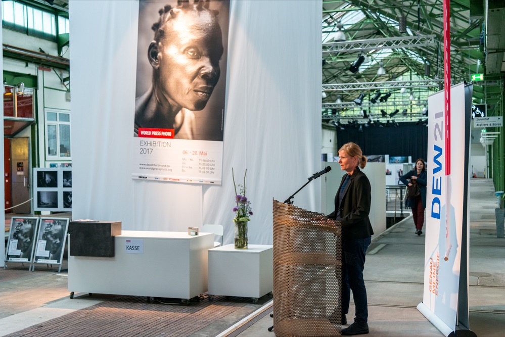 Der Dortmunder Fotograf Simon Bierwald hat die Eröffnung der Ausstellung im Kulturort Depot Dortmund für uns fotografiert. Zur Eröffnung sprachen Claudia Schenk (Depot), Bürgermeisterin Birgit Jörder, Sponsor Peter Flossbach (DEW21) sowie Suzan van den Berg (WPP-Foundation). Es war die weltweit erste Ausstellungseröffnung nach der Premiere in Amsterdam. Die Veranstaltung im Depot war sehr gut besucht.