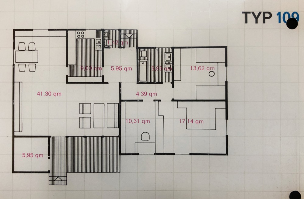 Die Bungalows gab es in verschiedenen Typen entsprechend der Wohnfläche, wahlweise mit zweiter Terrasse oder kompletter Küche. Die Wände konnten über die Kunststoffbeschichtung farbig ausfallen und waren abwaschbar – zum Aufhängen eines Bildes reichten Magnete aus.