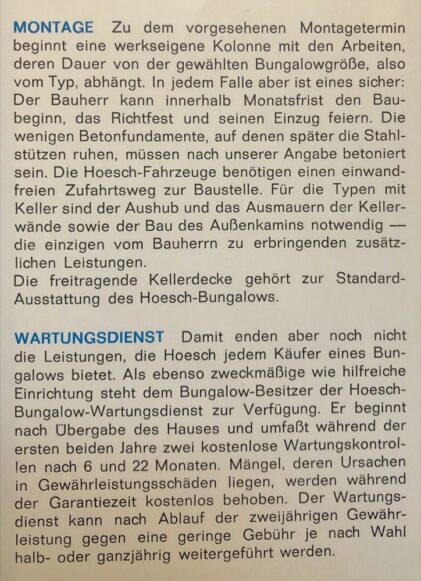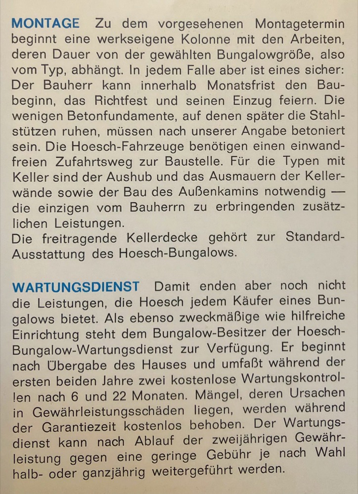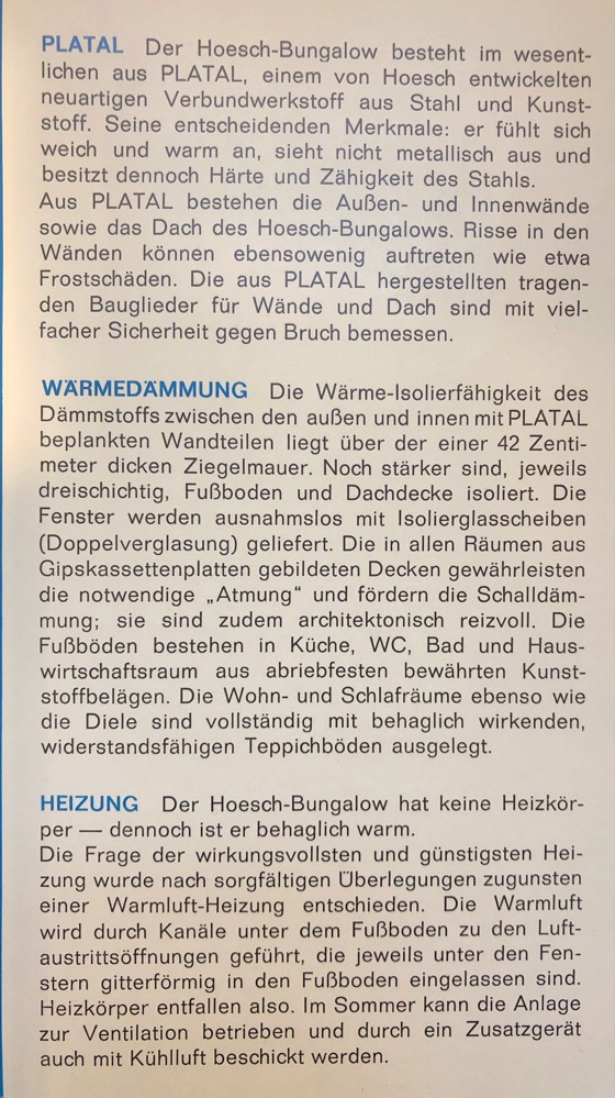 Das Dortmunder Unternehmen wollte durch den Bau eigener Fertighäuser vor allem den Absatz des gerade entwickelten Leichtprofils PLATAL – eines mit PVC beschichteten Stahlbleches – sichern. Doch der Traum platzte – gerade mal 200 Stahlfertighäuser wurden von der Hoesch AG in den 1960er-Jahren hergestellt – unter anderem als Test-Bungalow auf Mallorca.