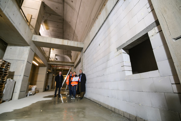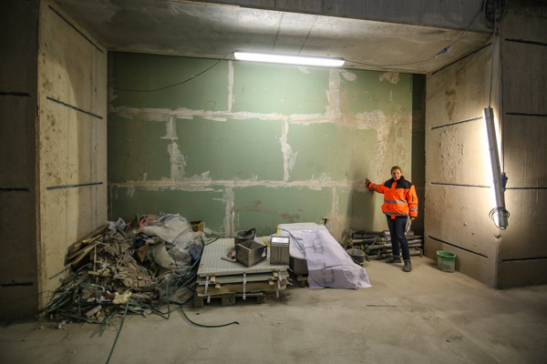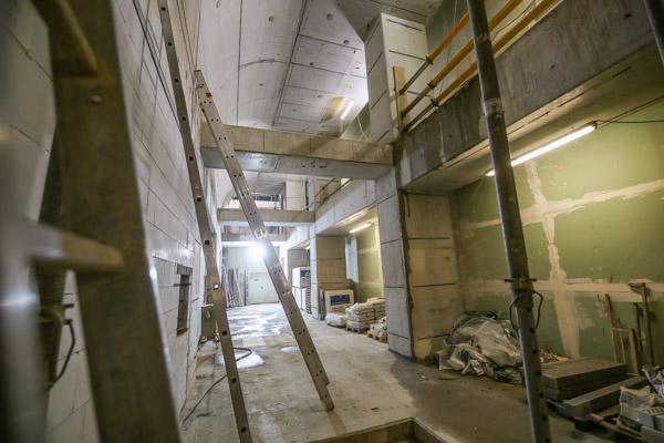Seit dem die Arbeiten im März 2016 beendet wurden, werden die alten Wände mit senkrechten Schlitzen versehen, in die die Arbeiter Stützen einbauen. Anschließend werden die Wände sukzessive entfernt. Die Abbruch- und Betonierarbeiten laufen derzeit im vollen Gange und sollen Ende Juni 2017 abgeschlossen werden.