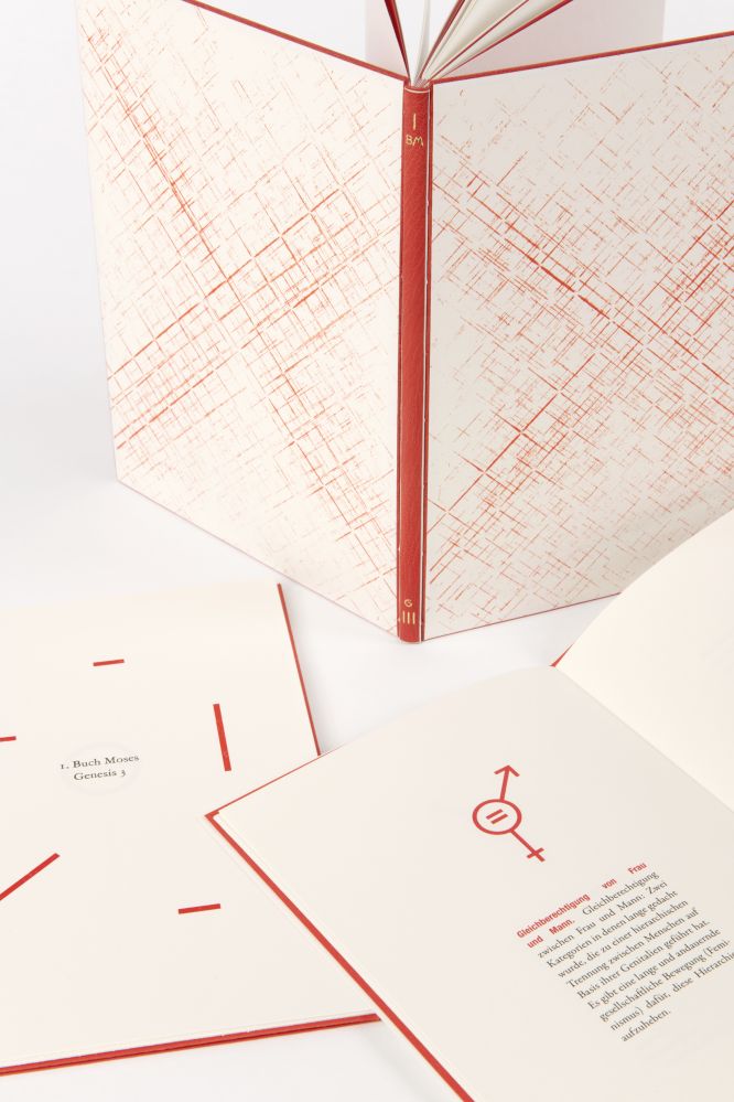 • Die Arbeiten, die in traditioneller Buchbinderarbeit, altem Bleisatz und Druckverfahren erstellt wurden, bestechen durch ihre konzeptionelle Stringenz. Gleichzeitig wird durch dieses traditionelle Handwerk eine hochaktuelle Thematik inhaltlich und visuell aufbereitet: