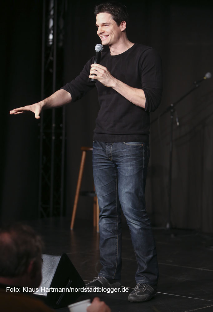 Moderiert wurde der Abend erstmals von Thomas Koch, dem Autor von „Ein Mann liest zurück“. Interessant und lebendig seine kurzen Interviews mit den Nachwuchs-Comedys in einer Wohnecke mit Stehlampe links neben der Bühne.