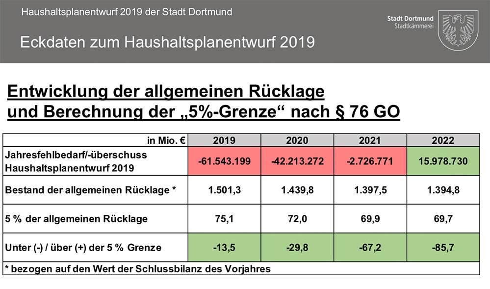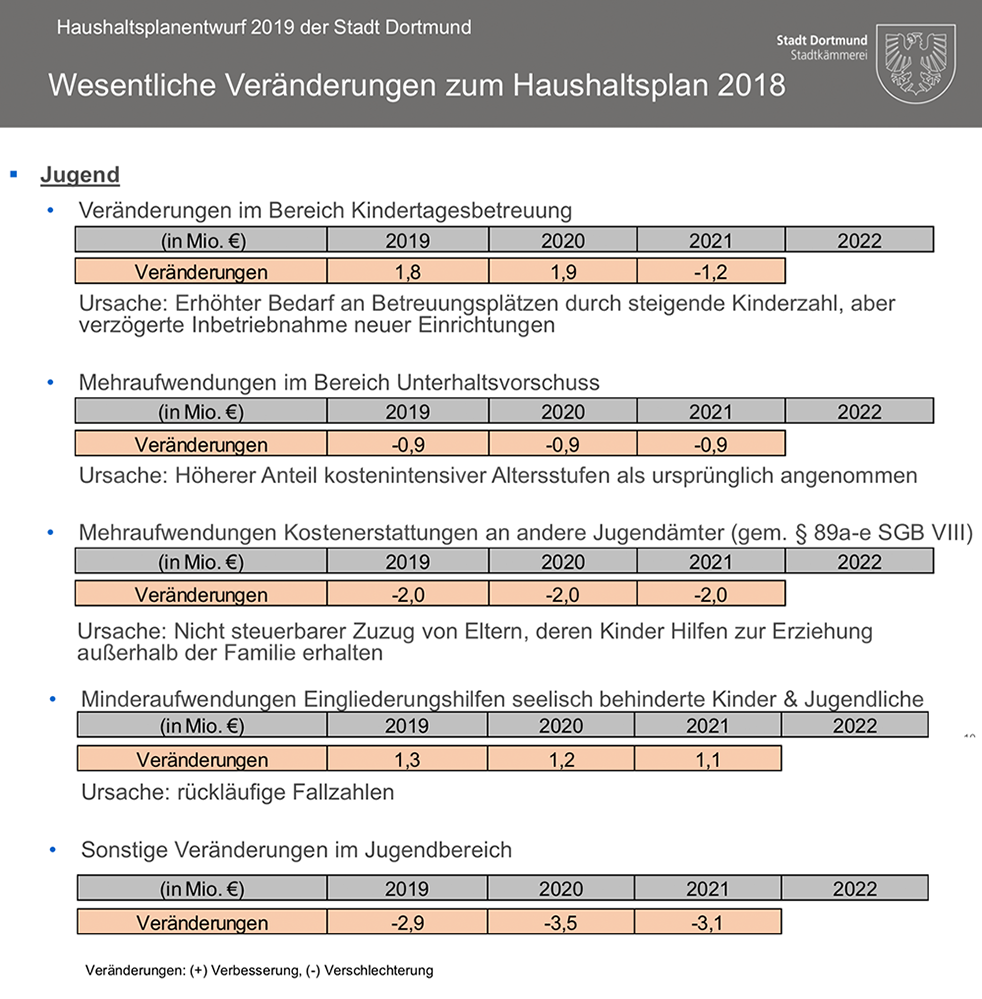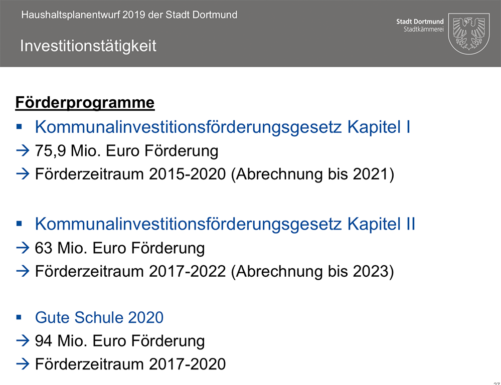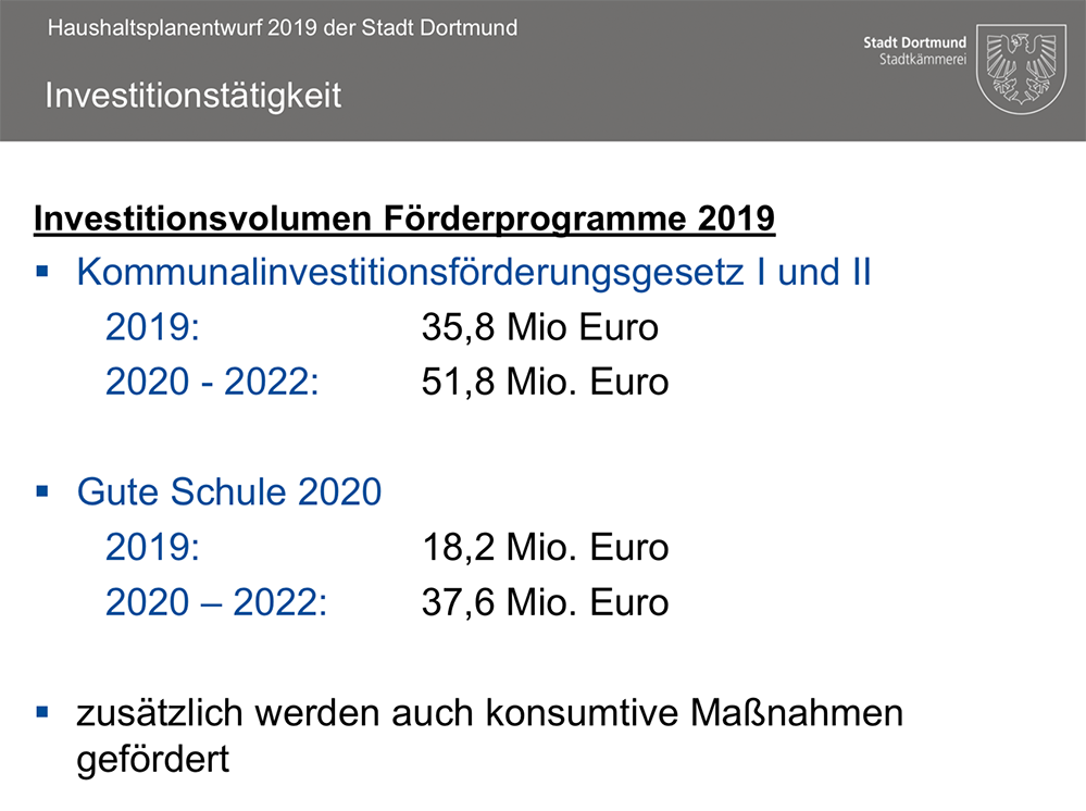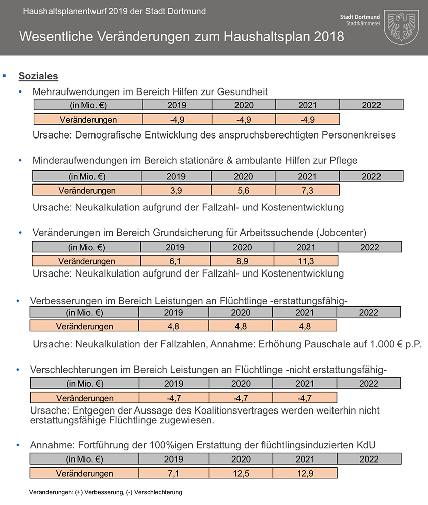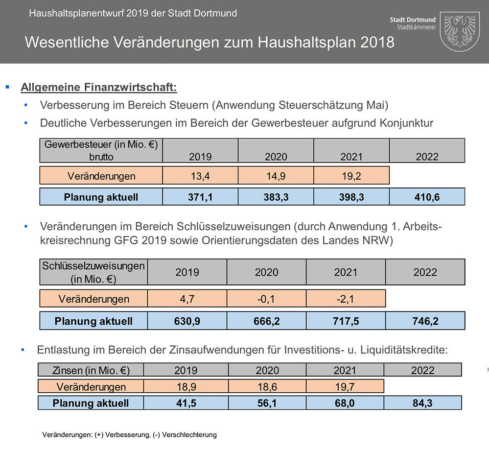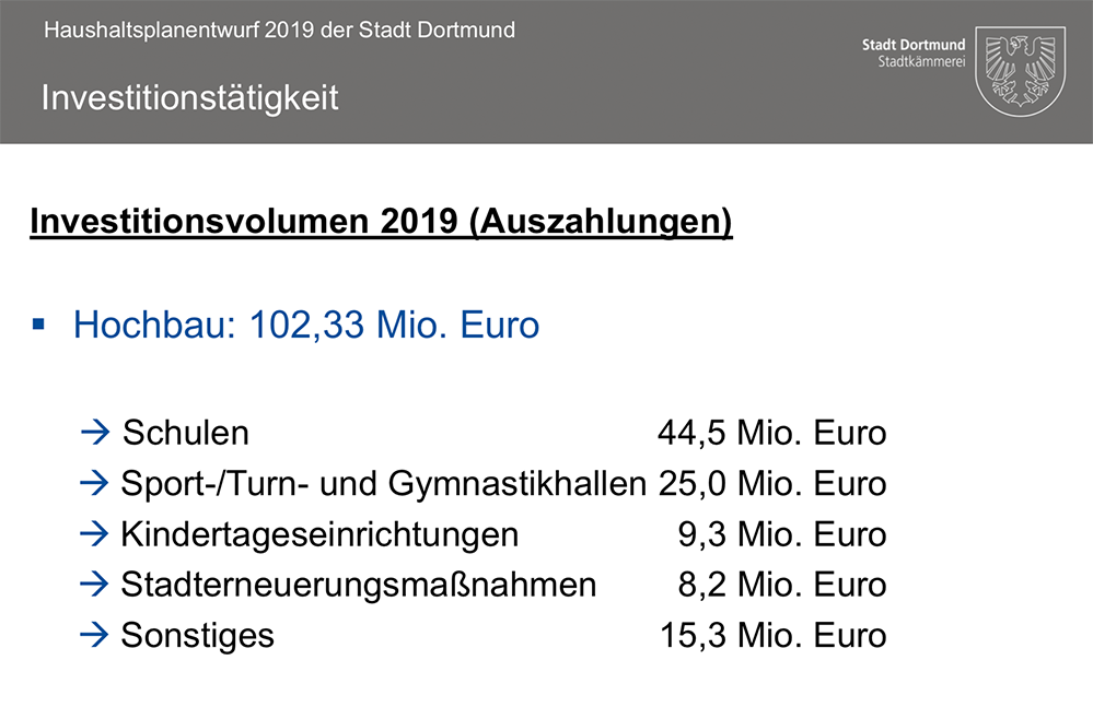 Ein Hauptgrund ist die auch in Dortmund sinkende Arbeitslosigkeit. Perspektivisch könnte die Arbeitslosenquote im kommenden Jahr einstellig werden. Bestimmte soziale Notlagen hätten sich verringert und damit die verbundenen Transferzahlungen.