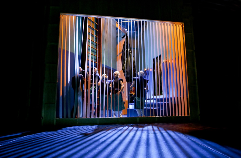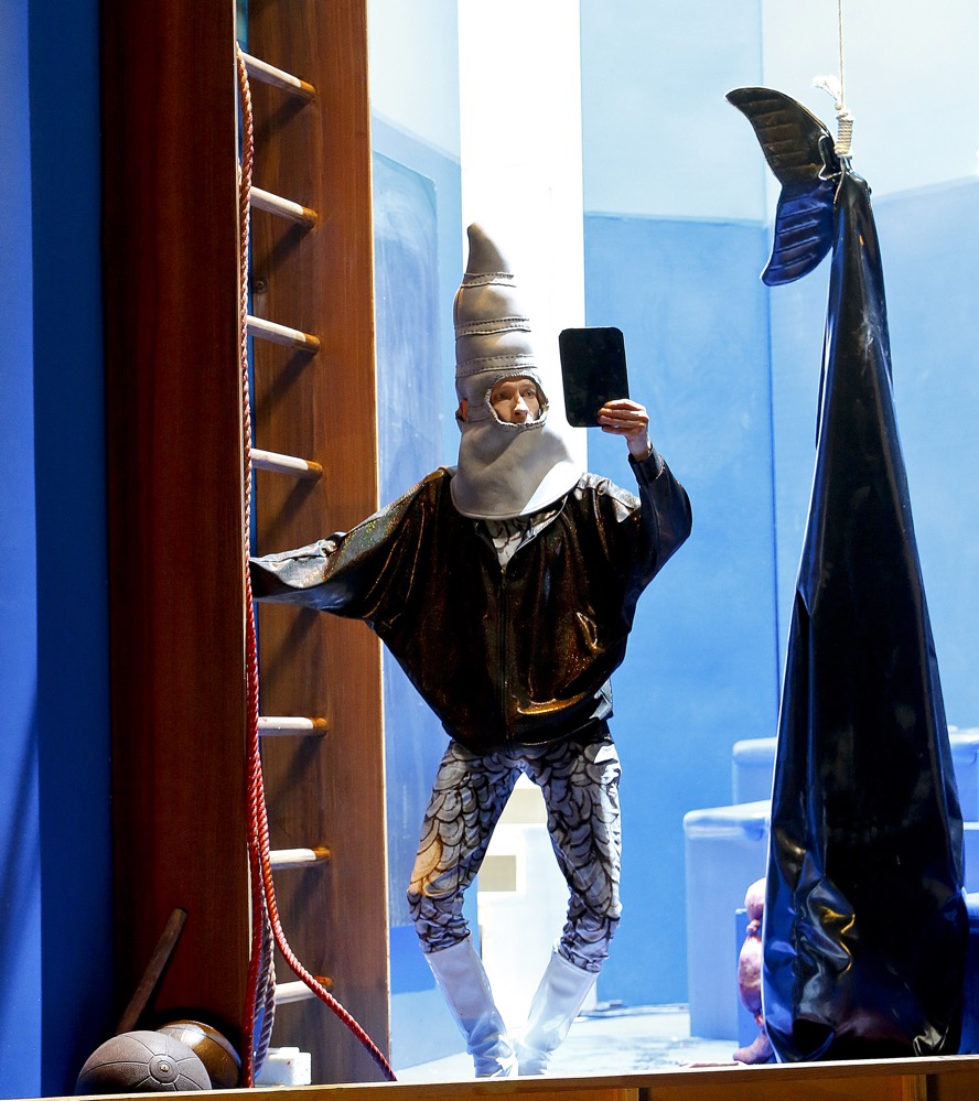 Im Bühnenbild des sechsten Tages erscheinen die Schauspieler in Tiermasken. Was wäre, wenn nicht der Mensch als „Krone der Schöpfung“ hervorgegangen wäre, sondern die Tiere? Die gleiche Hybris und belanglose Handlungsweise?