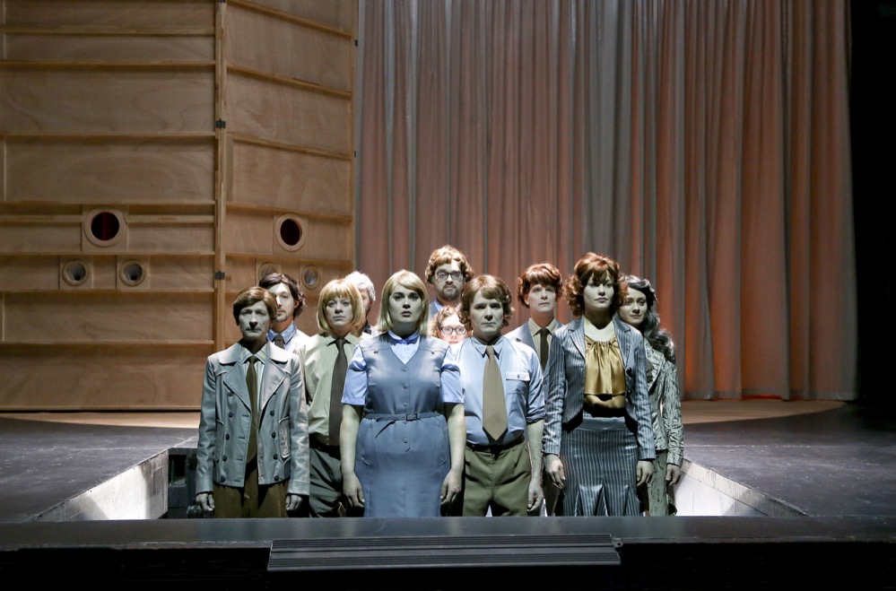 Die Grenzen zwischen Mann und Frau, Eva und Adam, sind von Beginn an verschwommen. Die Kostüme von Patricia Talacko lassen Geschlechter nur bedingt erkennen. Auch weibliche Schauspieler sind nur Schemen, Vorboten des Robo-Sapiens.