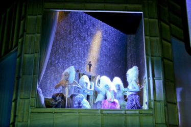 Ulrich Kordes als Uriel, Robin Grunwald als Raphael und Maria Helgarth als Gabriel waren fantastisch und man wünscht sich mehr solcher „Cross-Over“ Produktionen. Zumindest ist aber die Lust auf das Opernhaus gestiegen. Petra Riesenhuber am Piano und T.D. Finck von Finkenstein spielten die Musik auf der Bühne sichtbar ein. Dabei wurde zeitweise die Musik Haydns elektronisch verzerrt und modernisiert.