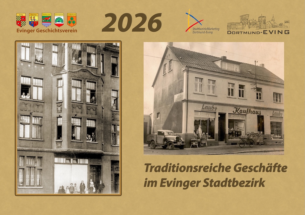 Der Kalender 2026 „Traditionsreiche Geschäfte im Stadtbezirk Eving“ erinnert an die vielen inhabergeführten Geschäfte. Initiator ist der Evinger Geschichts- und Kulturverein. Evinger Geschichts-u. Kulturverein