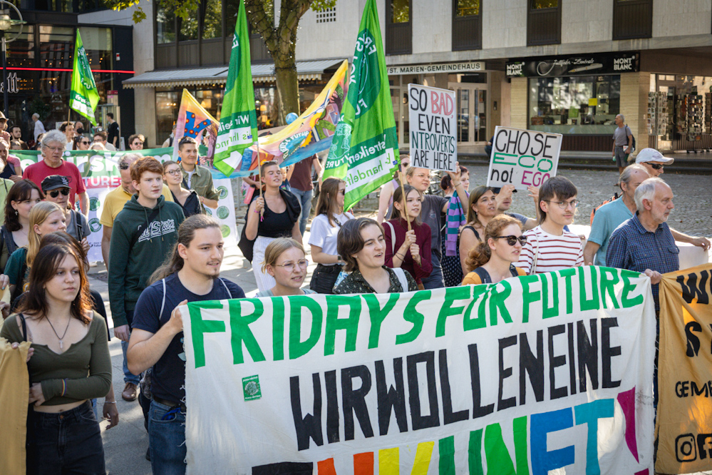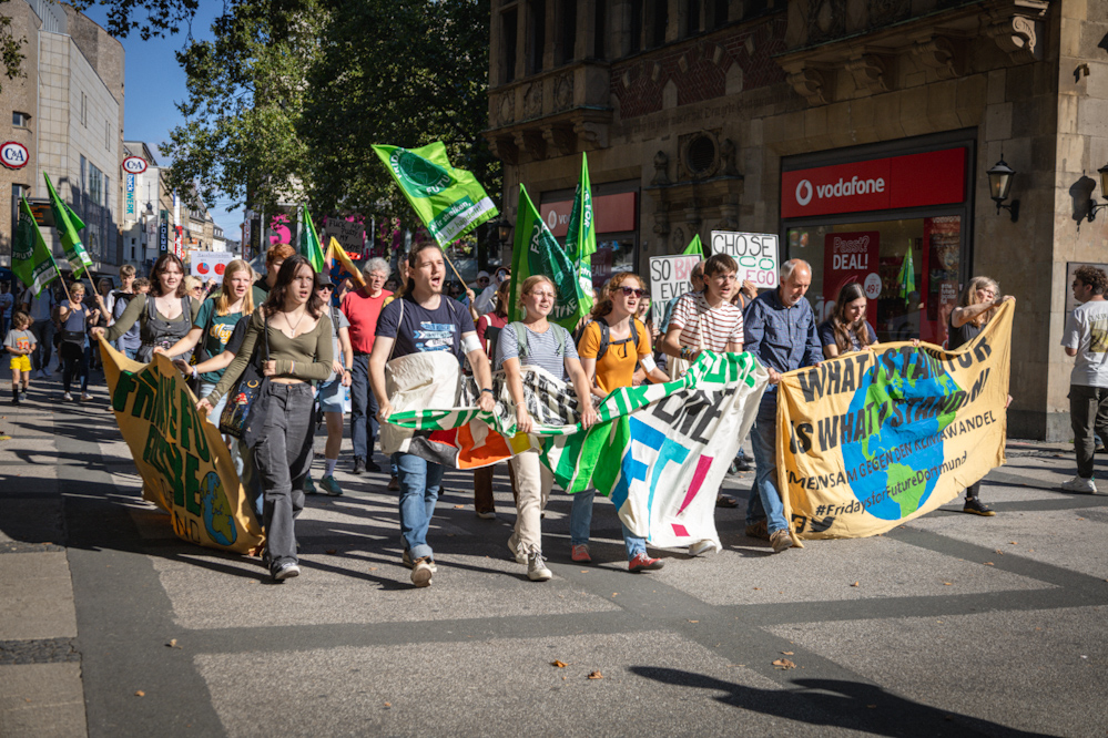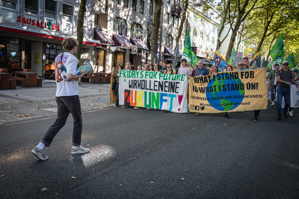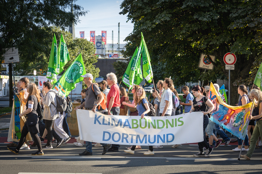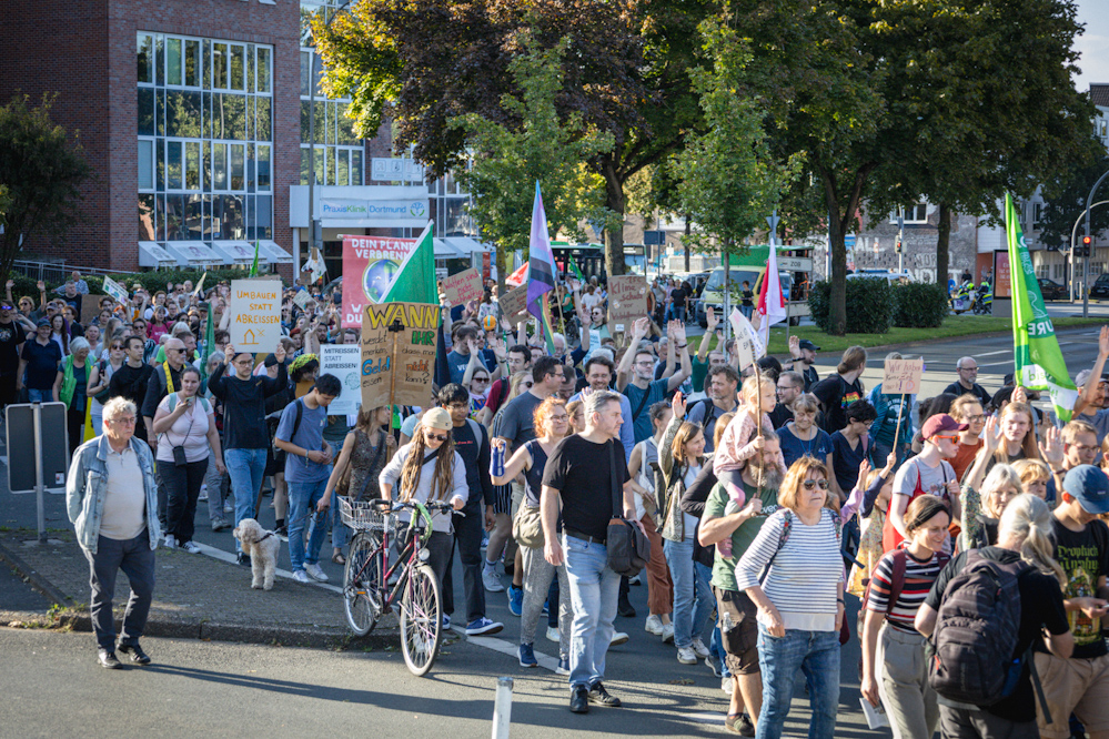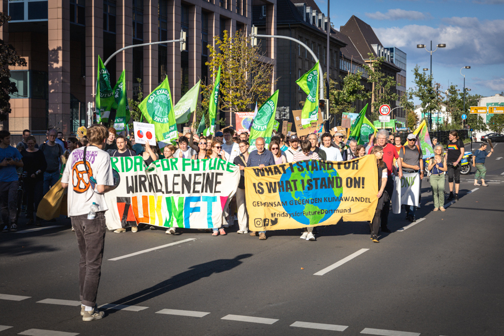 Für die Aktivist:innen standen auch kommunalpolitische Forderungen im Mittelpunkt. Dortmund werde Klimaneutralität bis 2035 nicht erreichen, unter anderem weil sowohl Personal als auch Budget in der Verwaltung fehlen. In den anstehenden Haushaltsverhandlungen im November müsse Klimaschutz stärker im Haushalt priorisiert werden, erklärte die Gruppe.