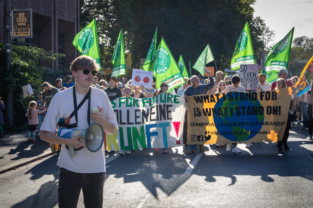 „Bei lokalen Klimaschutzzielen der Stadt Dortmund handelt es sich hauptsächlich um politische Beschlüsse, die ohne für die Umsetzung benötigten Gelder und Ressourcen kommen. Aber wir wissen: Wir haben ein Recht auf einen lebenswerten Planeten, auf eine gute Zukunft, auf sichere Jobs und eine gerechte Gesellschaft“ sagt Malik Pätzold von Fridays For Future Dortmund.