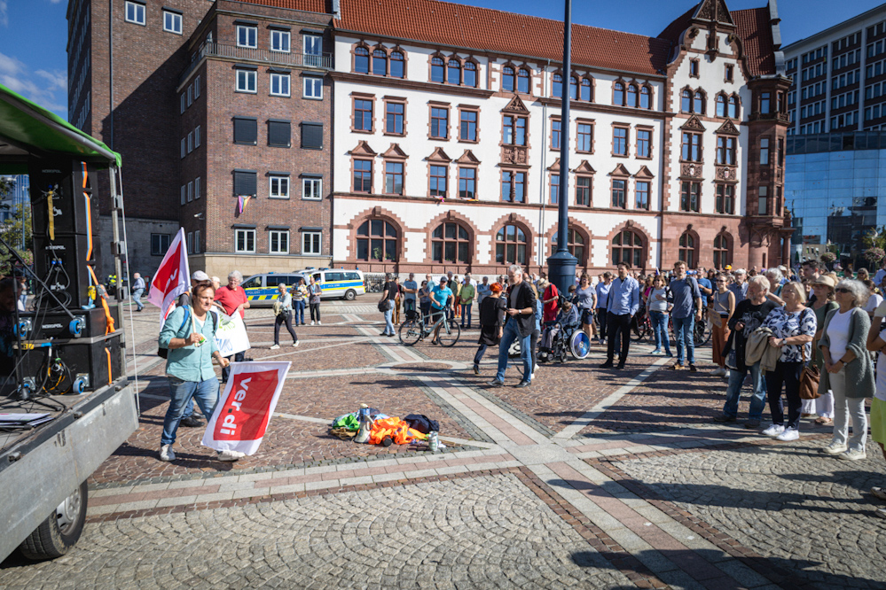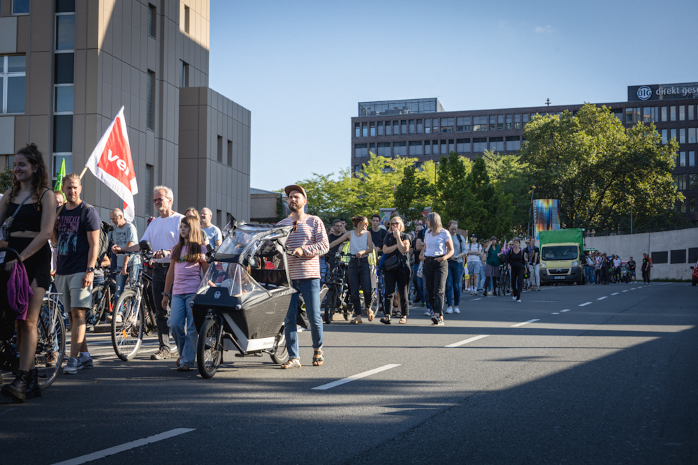 „Leider tritt die Stadtverwaltung oftmals als Bremsklotz auf, indem beispielsweise konstruktive Vorschläge aus dem Klimabeirat ignoriert werden“, so der Aktivist. Weitere Redebeiträge gab es unter anderem von der Gewerkschaft Verdi, dem Klimabündnis Dortmund, Parents for Future und der Eisenbahn- und Verkehrsgewerkschaft (EVG). Vor der Demonstration gab es einen Fahrrad-Zubringer von der ADFC-Geschäftsstelle in Hörde zum Friedensplatz.
