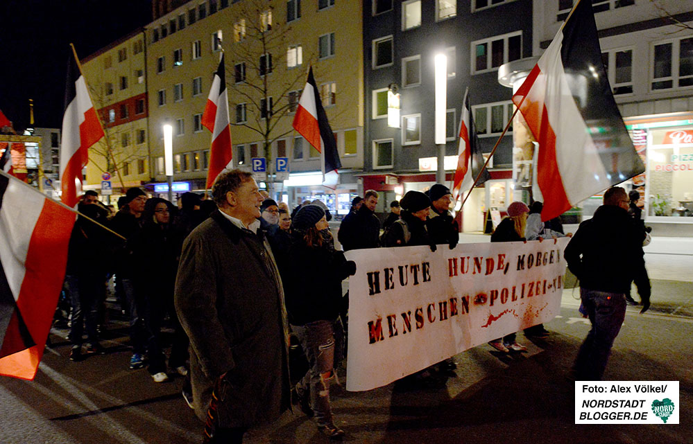 Es ist eine Mischung aus Neonazis und Hooligans, welche ursprünglich unter dem Motto „Schicht im Schacht – Gemeinsam gegen den Terror“ durch die östliche Innenstadt demonstrieren wollte, ehe Polizeipräsident Lange und das OVG Münster den geplanten Aufmarsch zur Standkundgebung schrumpften.