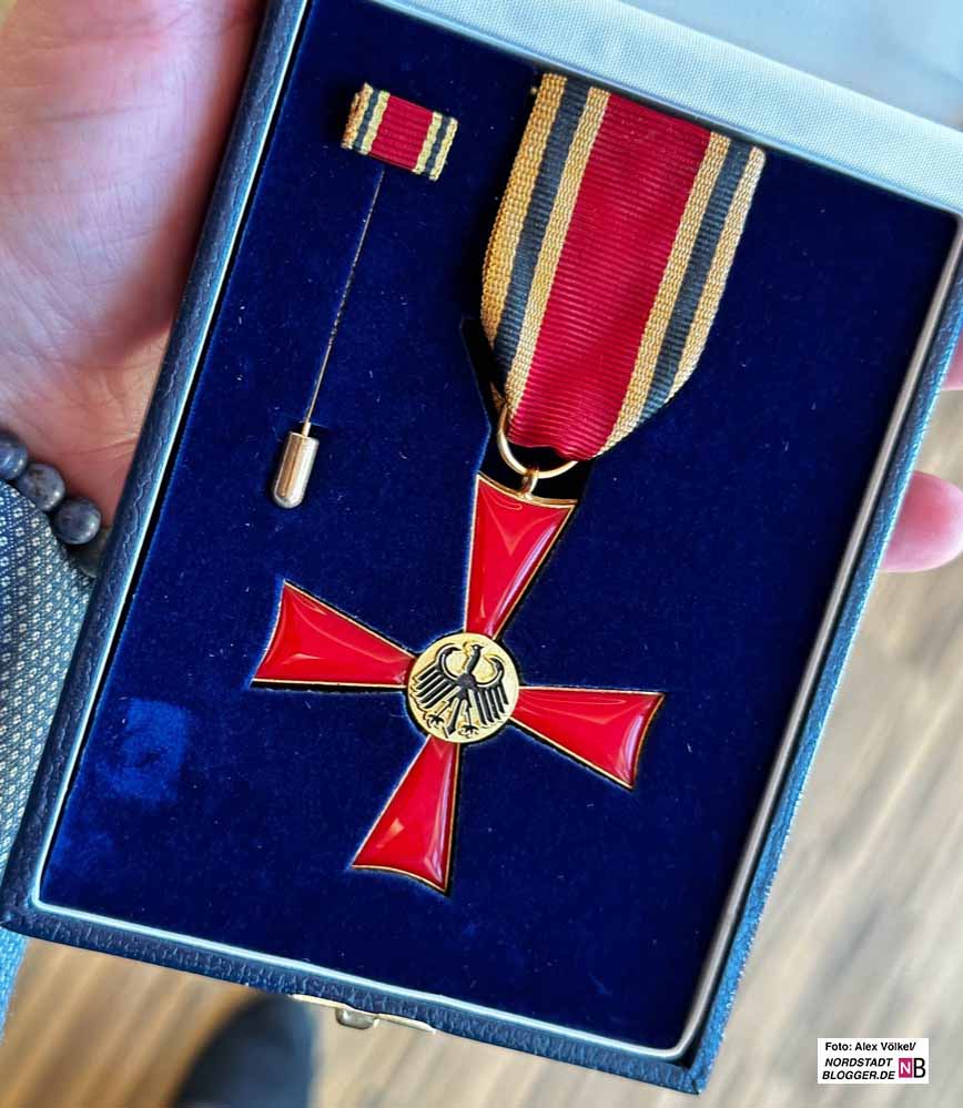 OB Thomas Westphal überreichte Wolfgang Polak im Namen des Bundespräsidenten das Bundesverdienstkreuz. Foto: Alexander Völkel für nordstadtblogger.de