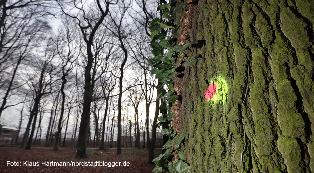 Das Tiefbauamt der Stadt Dortmund wird zum Jahresbeginn 2014 im Fredenbaumpark zirka 150 Einzelbäume aus dem Altbestand fällen. In den letzten zwei Jahren sind viele Eichen infolge von Trockenheit, in Verbindung mit wiederholtem Kahlfraß des Eichenlaubes durch Schmetterlingslarven, im Bestand stark geschwächt worden oder zum Teil schon abgestorben. Diese Bäume müssen jetzt aus Gründen der Verkehrssicherung gefällt werden.