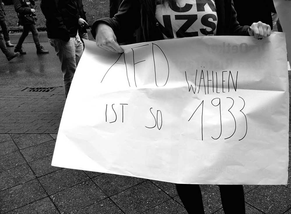 Manche Gruppierungen präsentieren sich sehr bürgerlich, andere wiederum adaptieren bewusst den Stil moderner Jugendkulturen. Die Künstlerin Karin Richert setzt sich seit vielen Jahren politisch für eine gerechte Welt ohne Unterdrückung und Rassismus ein. Zu ihren Hauptanliegen zählt der Widerstand gegen Rechtsextremismus und rechte Denkweisen.