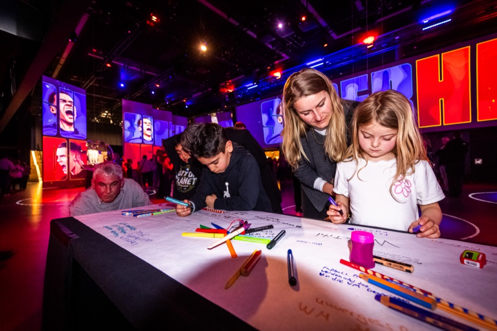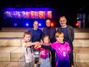 Die selbst erklärte Blockbuster-Ausstellung „Superheroes. Jamal Musiala. Florian Wirtz. The Immersive Experience“ im Deutschen Fußballmuseum ist eröffnet. Jetzt wurde die Schau erstmals der Öffentlichkeit vorgestellt. Rund 400 Kinder und Jugendliche sowie deren Familien nahmen an der Premiere teil. Auch Angehörige der beiden Nationalspieler waren vor Ort.