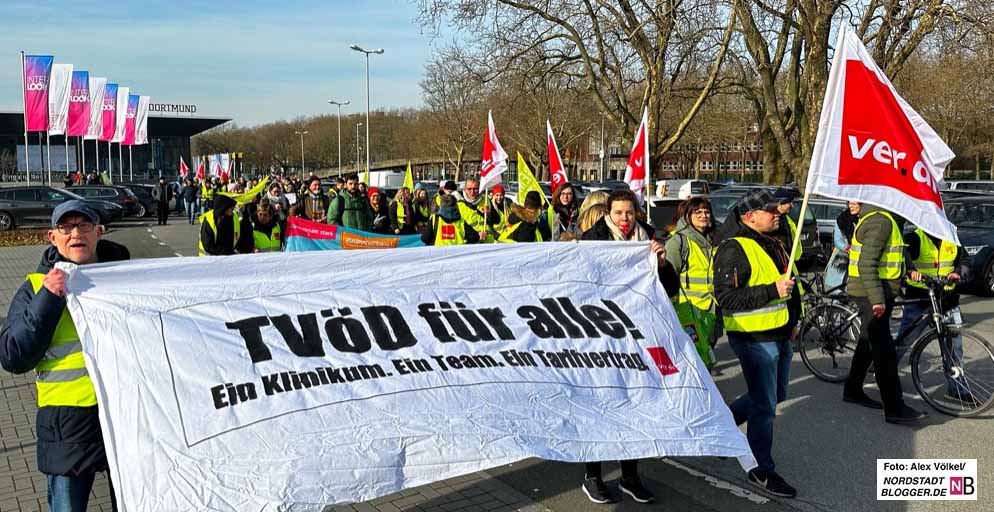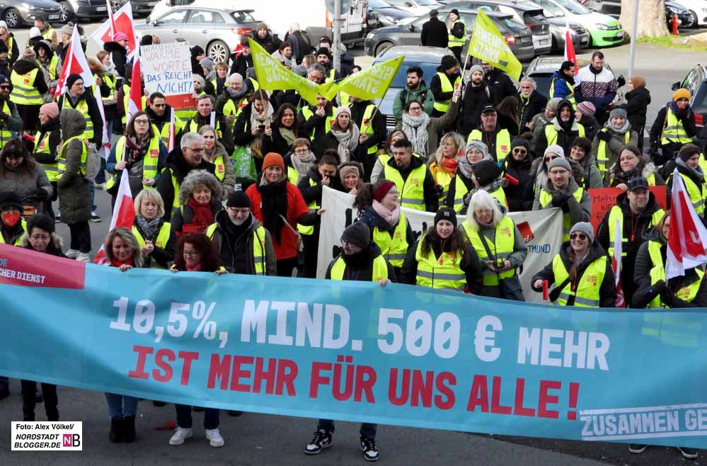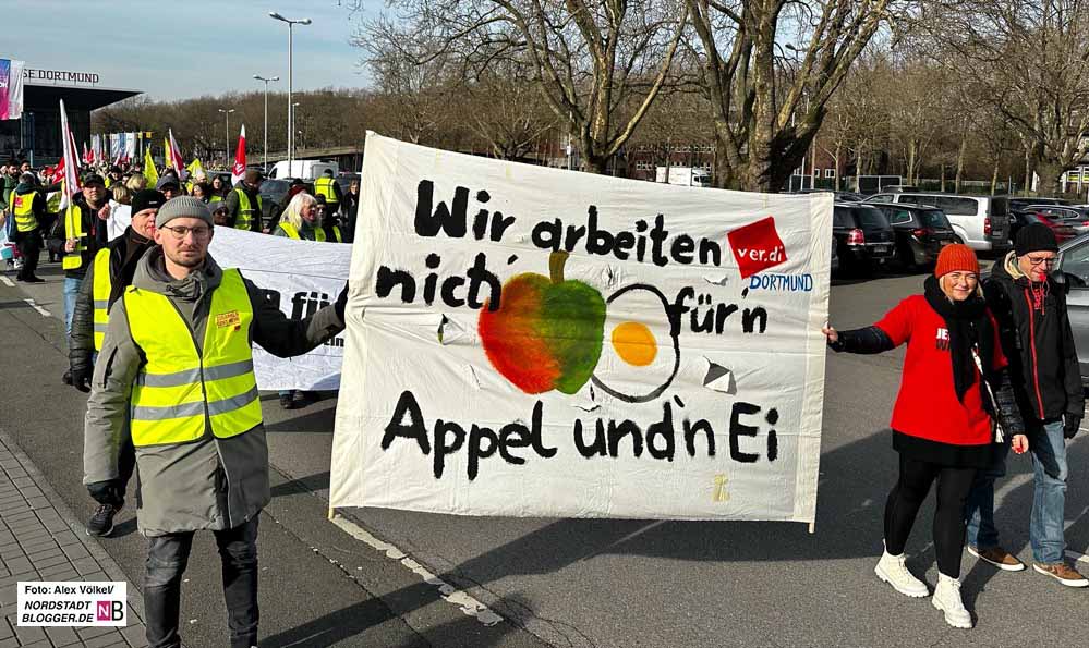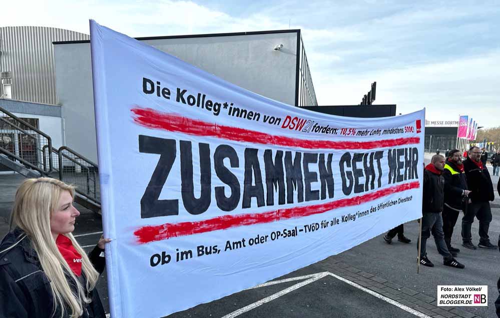 Daher wollte man von Dortmund „ein starkes Signal“ senden. Dazu gehörte neben dem Streik – Bus und Bahn blieben in den Depots – auch ein Demozug. Die Gewerkschaft fordert in der anstehenden Tarifrunde für die Angestellten von Bund und Kommunen 10,5 Prozent mehr Gehalt, mindestens aber 500 Euro mehr im Monat bei einer Laufzeit von zwölf Monaten.