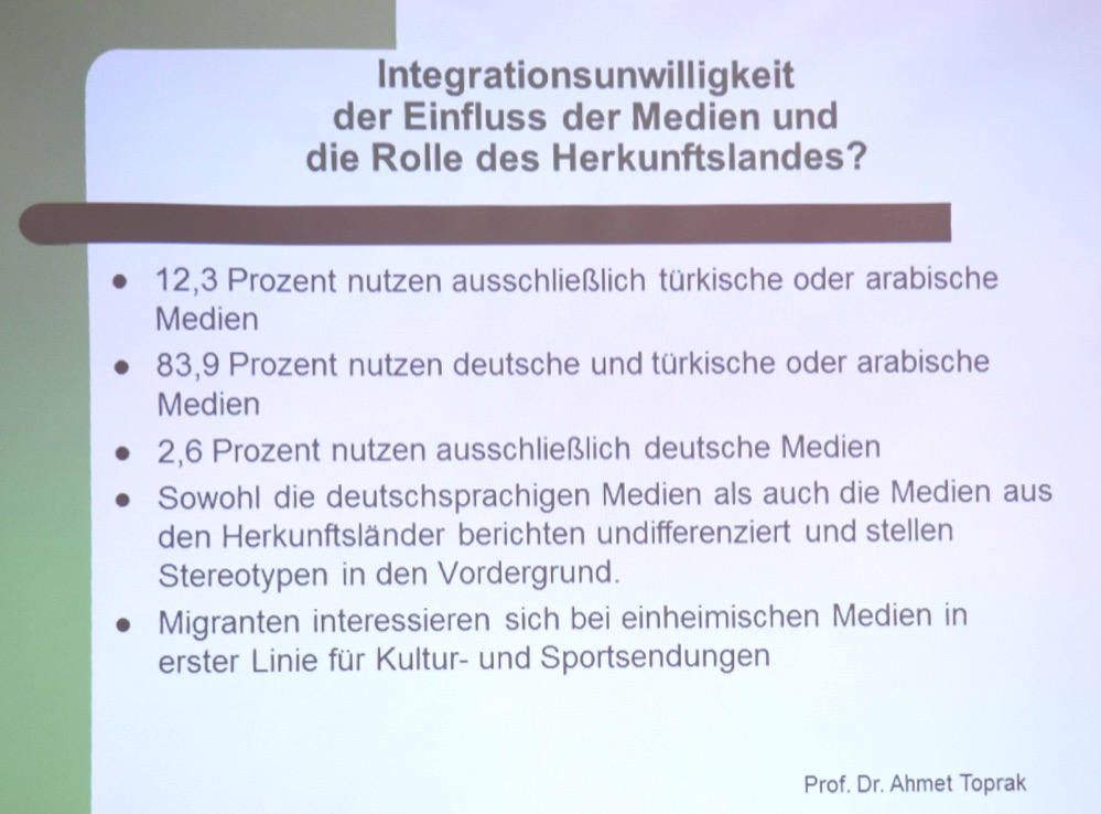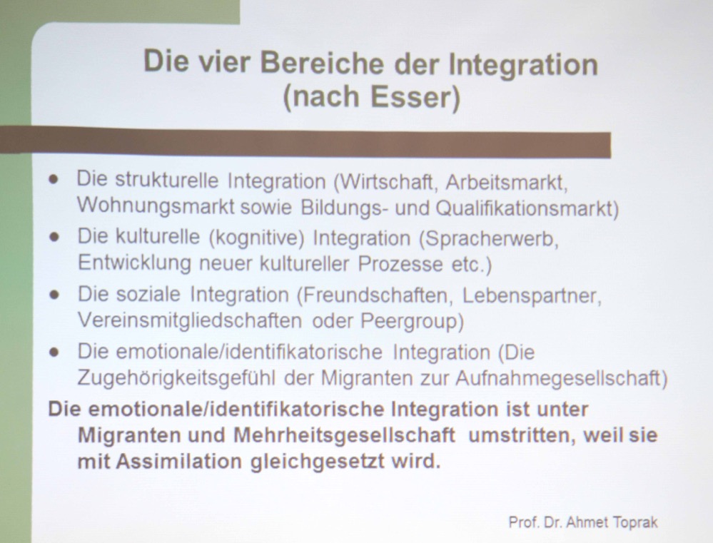 Einen rund einstündigen Impulsvortrag gab Prof. Dr. Ahmet Toprak, Dekan der Fachhochschule Dortmund, zum Themenkomplex „Gesellschaftliche Integration / Flucht / Neuzuwanderung“. Er erinnerte an die Zeit der sogenannten „Gastarbeiter“: Deutschland habe nicht hochqualifizierte Fachkräfte, sondern Arbeiter für an- und ungelernte Tätigkeiten gesucht und daher zumeist MigrantInnen aus ländlichen Gebieten bekommen.