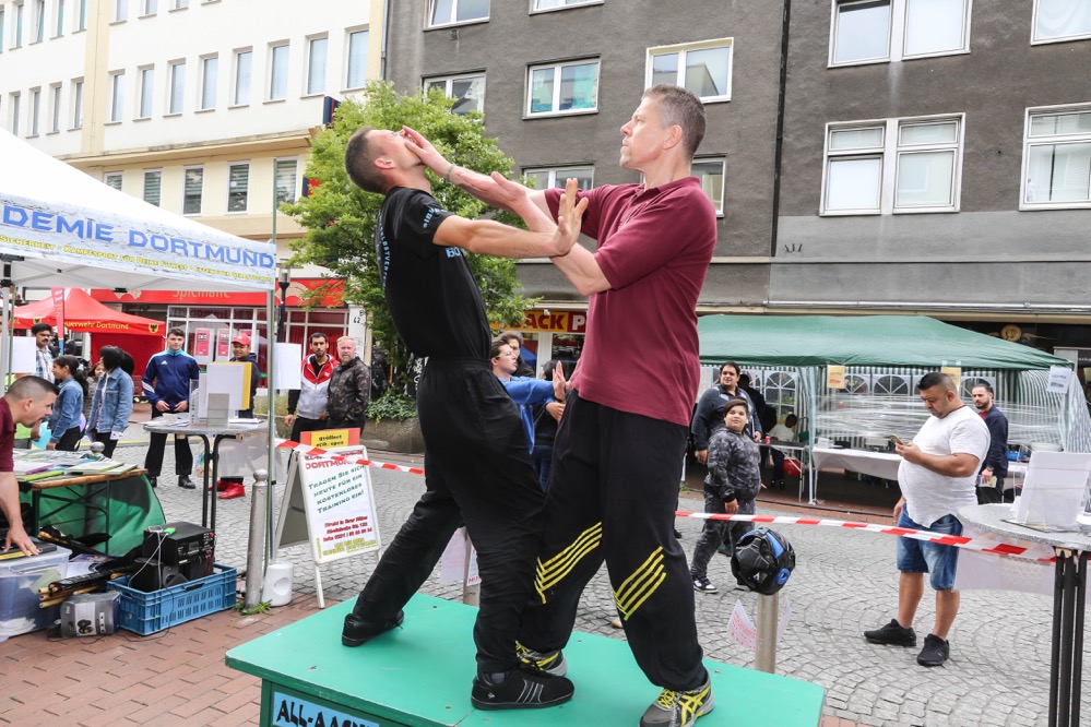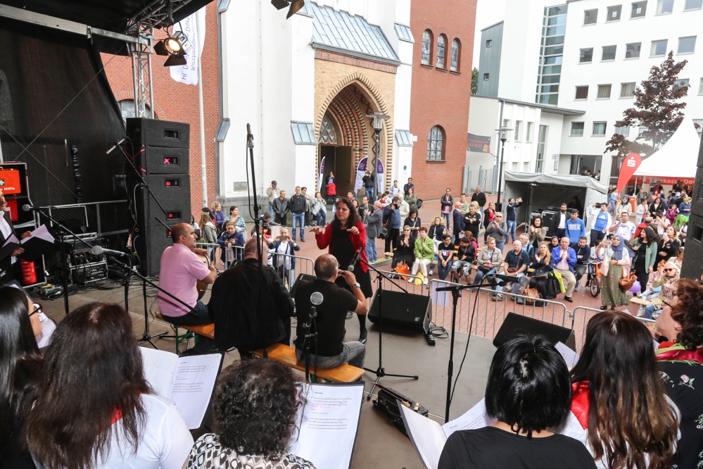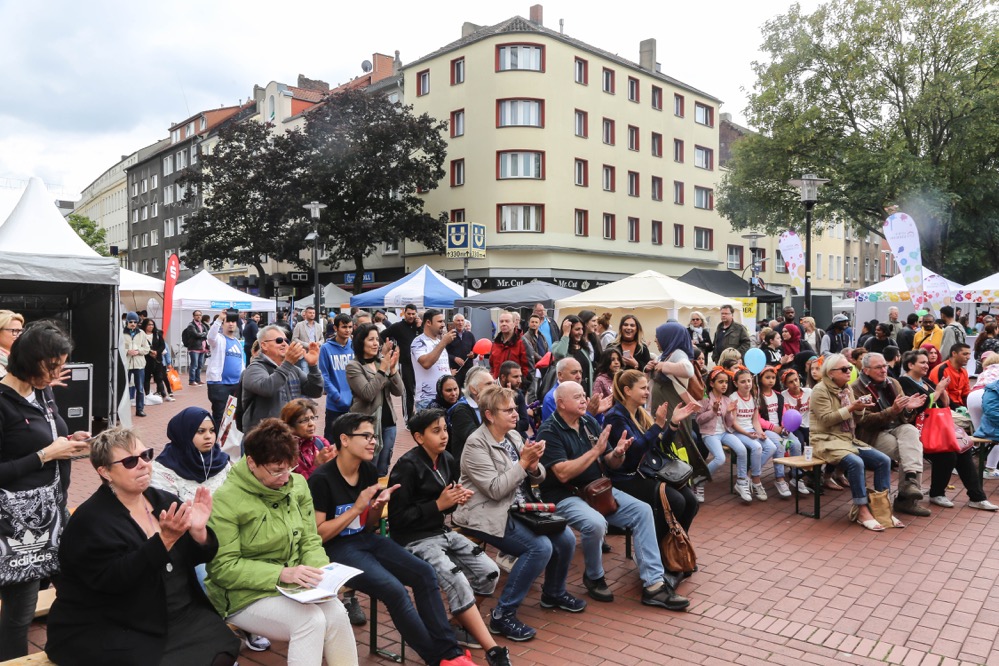 Zwölf Stunden Programm wurde den BürgerInnen von Dortmund auf der Bühne vor der Kirche St. Joseph präsentiert. Tänze und Gesang der BürgerInnen aus den unterschiedlichen Kulturen, welche in Dortmund leben, begeisterten das zahlreich vor der Bühne verweilende, animierte Publikum.