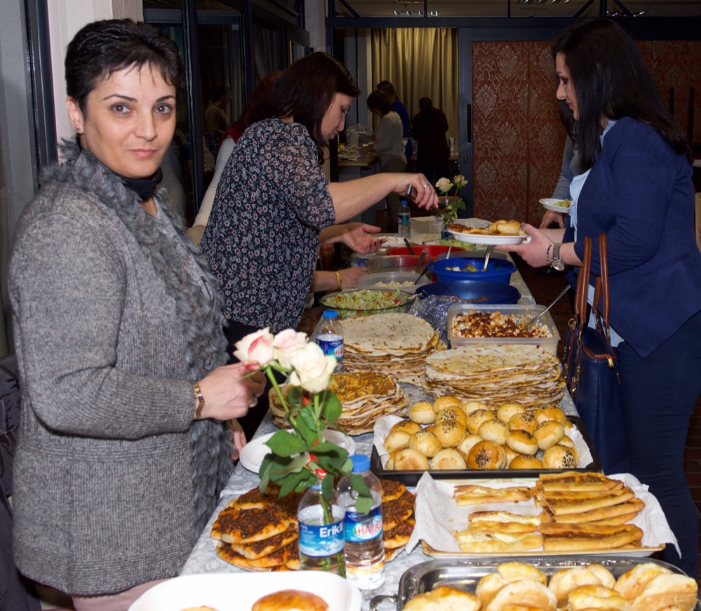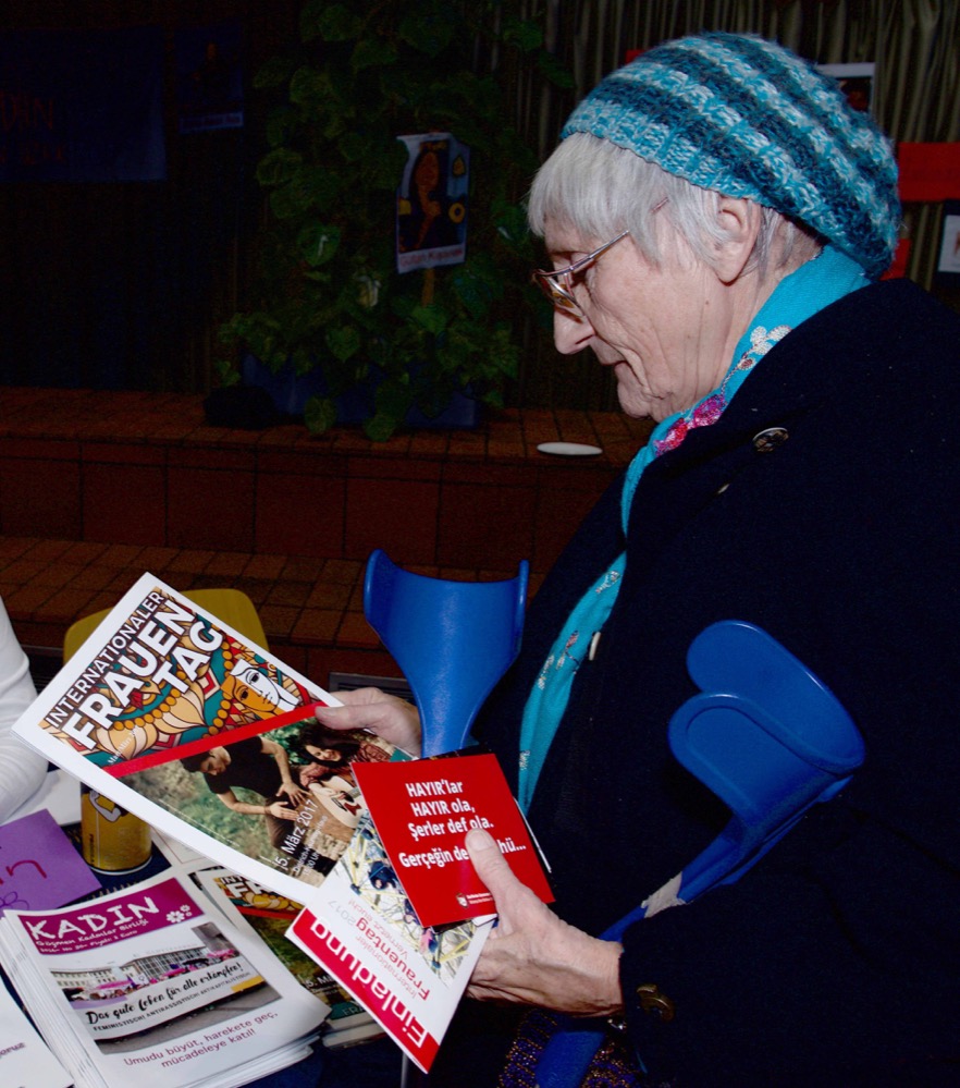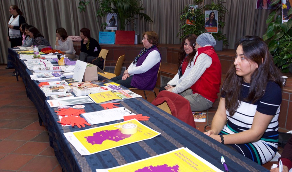 2008 wurde der Verein gegründet und zählt heute 55 Mitglieder. Dass zum Internationalen Frauentag mehr als 300 kommen, hat für die Fatime Sahin und Elif Demirhan einen guten Grund: „Jede und jeder, die hier sind, waren schon mal für sich selbst, für die Familie, für Freunde oder Verwandte in unserem Verein und wollten einen Ratschlag.“