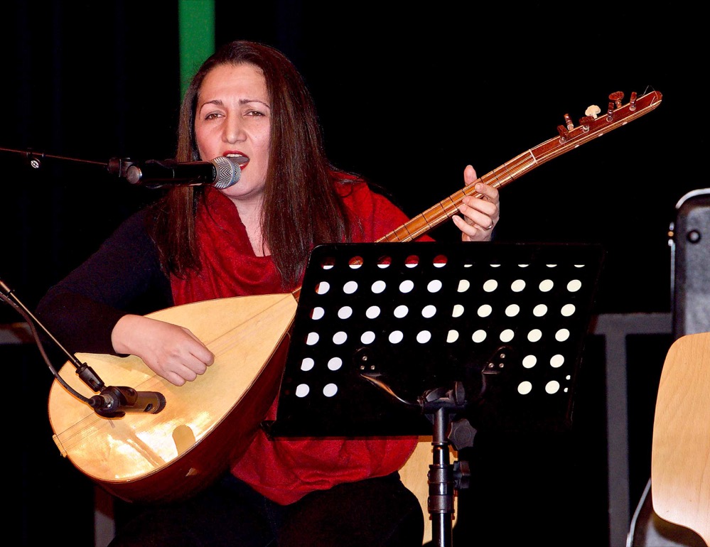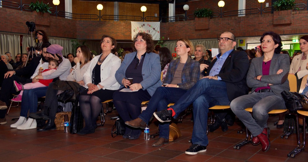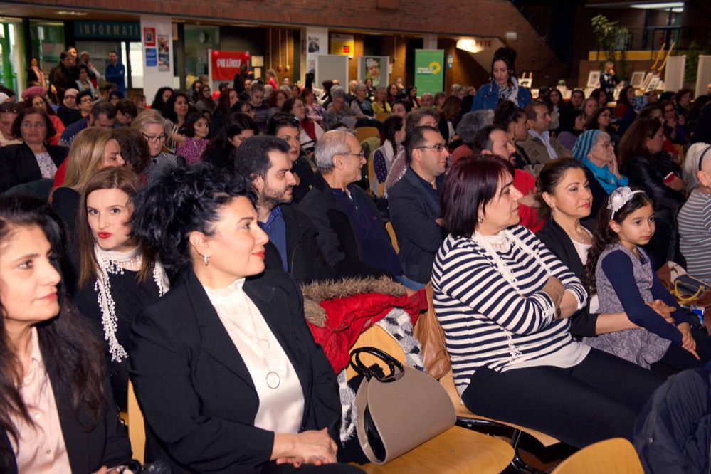Weitere Mitglieder des Vereins trugen Gedichte und Lieder vor, Elif Demirhan vom Vorstand des Vereins übernahm die Rede, die jedoch wegen einer technischen Panne nur zum kleinen Teil auf Deutsch auf der Leinwand übersetzt werden konnte.