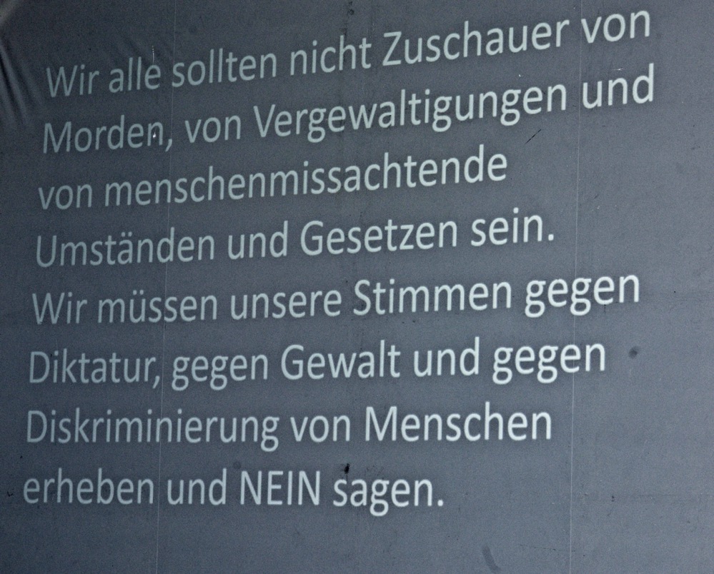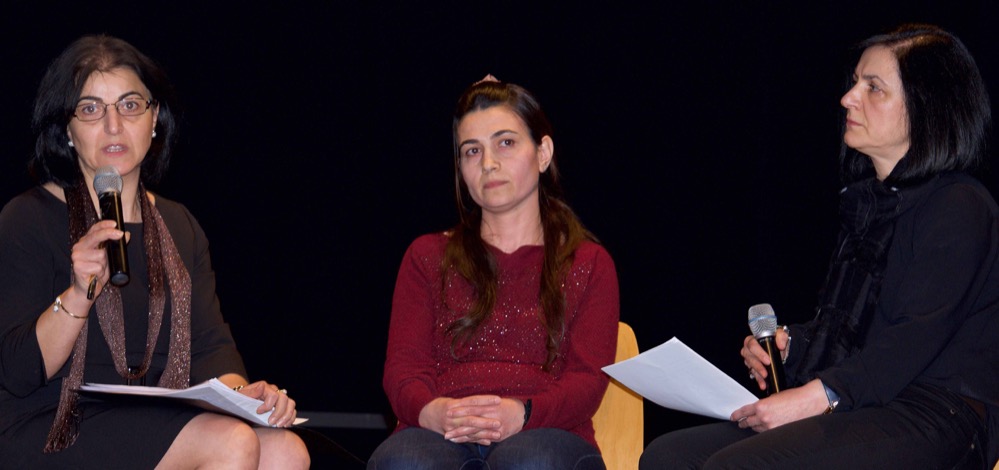 Anschließend erzählte eine 33jährige Irakerin von der Vertreibung durch den IS (Islamischen Staat) aus ihrem Dorf, die Entführung von Jungen und Mädchen, die Flucht in die Berge und später in die Türkei, und das Ankommen in Deutschland.